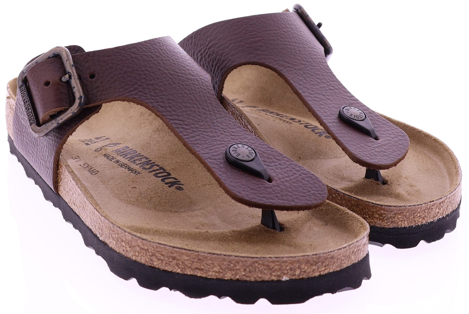 Brown leather men's thong sandal by Birkenstock. This Ramses Wire Buckle in the color Vintage Wood Roast is crafted from high-quality natural leather with a subtle vintage effect for an authentic look. The wide strap with a robust metal buckle ensures a secure and adjustable fit. The anatomically shaped cork-latex footbed offers long-lasting comfort and support, while the durable outsole guarantees optimal grip. Also discover other men's sandals from Birkenstock at Klijsen.