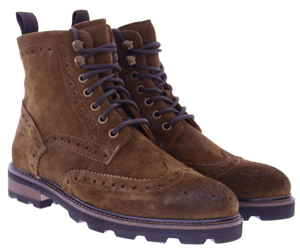 Dark brown suede men's lace-up boot from Daniel Kenneth. This boot is a luxurious mountain shoe style. The insole is removable and the outsole is rubber.