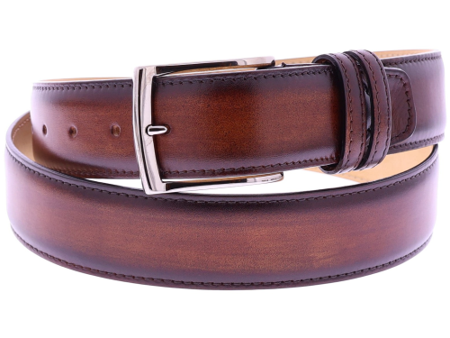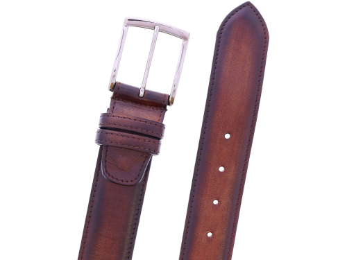 Brown leather men's belt by Harris. This belt matches perfectly with the brown sneakers with article number 44886. The belt is hand-finished. Thanks to the practical construction, the belt can be easily shortened at the buckle for a perfect fit.