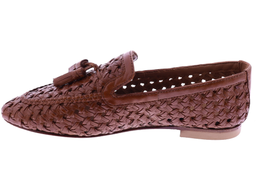 Medium brown leather women's loafers by Si. The Zuha model is crafted from supple braided leather, creating an airy and refined look. The subtle open structure makes these loafers ideal for warm days, while the soft leather finish contributes to a comfortable feel. The decorative tassels give the model a playful, stylish touch. Great with a summer outfit or a smart casual look. Also discover the other women's loafers by Si at Klijsen.