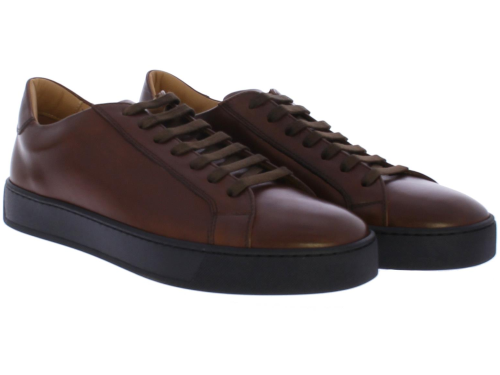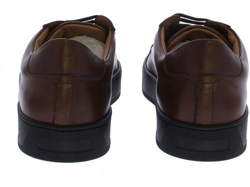 Brown leather men's sneaker by Valdorini. This sneaker is crafted from brown leather and features a black rubber sole. The insole is removable.
