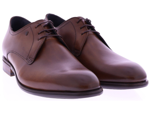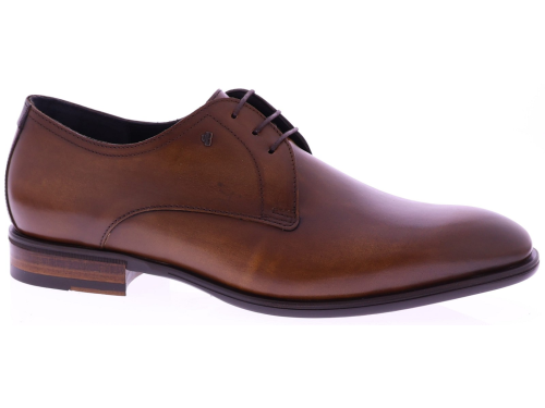 Brown leather men's lace-up shoe by Van Bommel. This classic Terra 02.04 model in H-last is crafted from supple polished leather that gives the shoe a rich, timeless look. The refined lines and slim last ensure an elegant fit, while the rubber sole offers stable and comfortable walking. A perfect choice for both formal occasions and stylish everyday outfits. Also discover other men's lace-up shoes from Van Bommel at Klijsen.