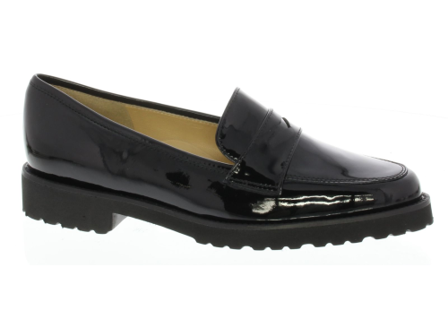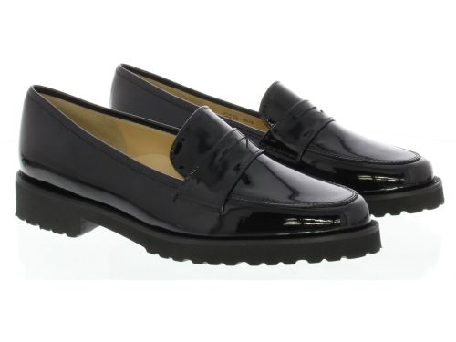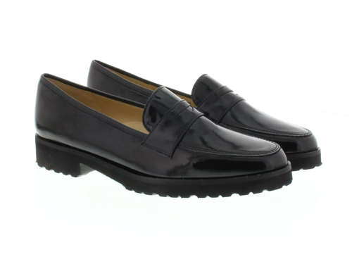 Black patent leather women's loafer by Brunate. The loafer is made of extra soft calf patent leather for more comfort. The loafer has a very comfortable footbed and the sole is made of lightweight rubber with a light profile.