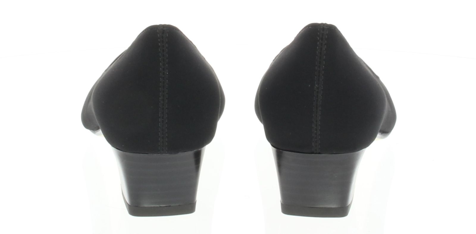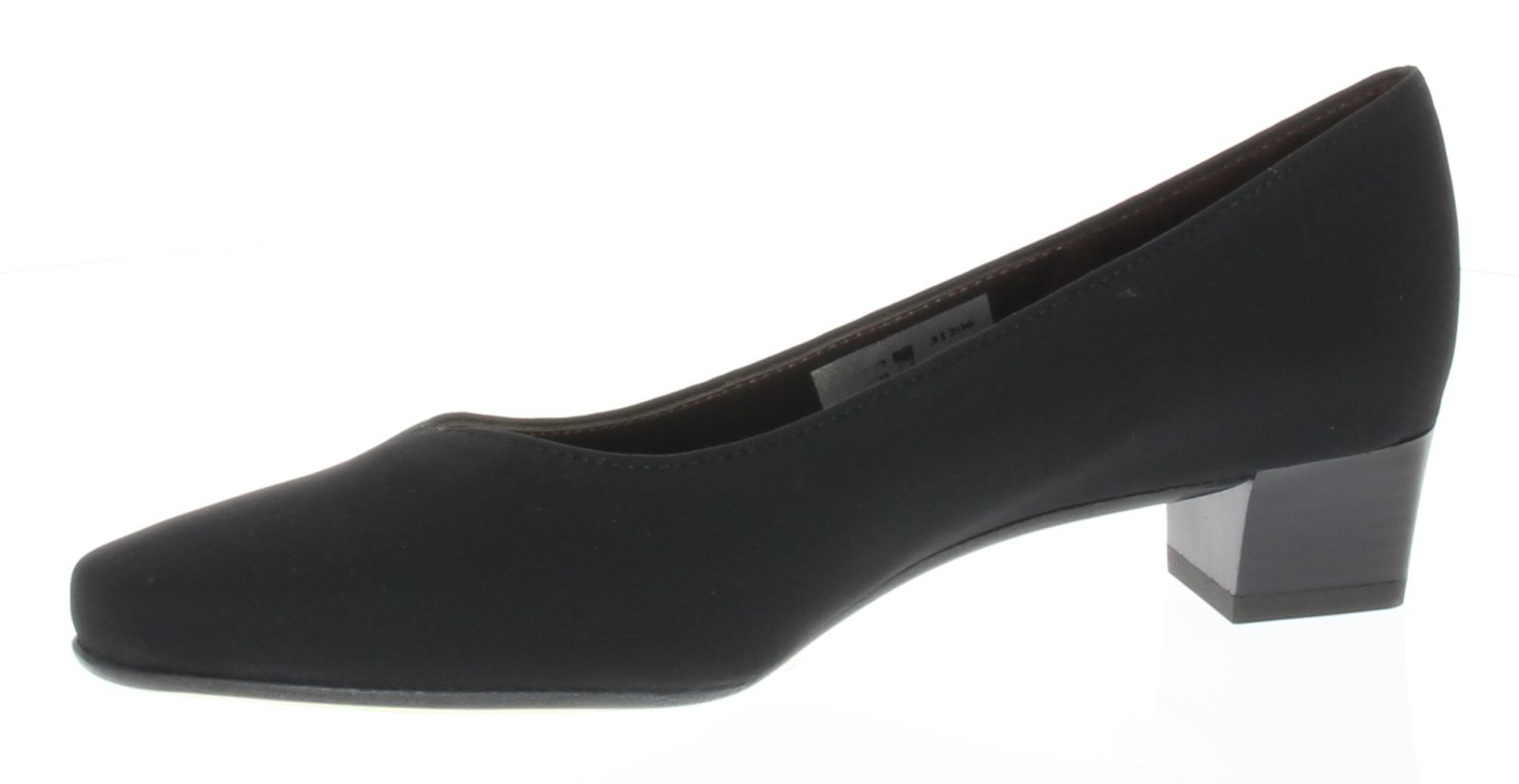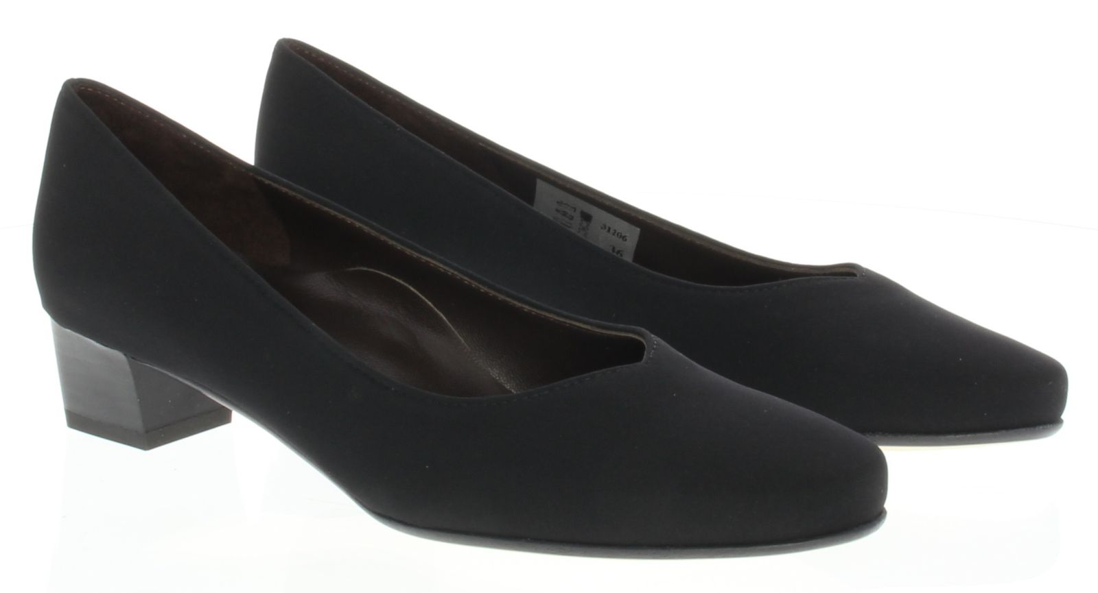 Black fabric ladies pump by Brunate. The pump has an elegant V-cutout on the foot, is fully leather lined and has a comfortable 3 cm heel.