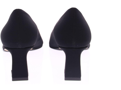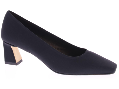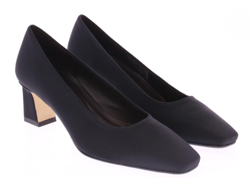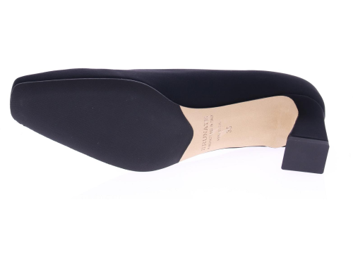An elegant women's pump from Brunate, crafted from black fabric with a square toe. The pump features a refined 5cm straight heel that tapers subtly at the inside for a unique and stylish look. Perfect for both formal occasions and casual-chic outfits, this shoe offers a refined balance between comfort and design. A timeless choice for the modern woman.