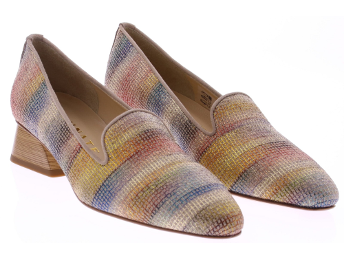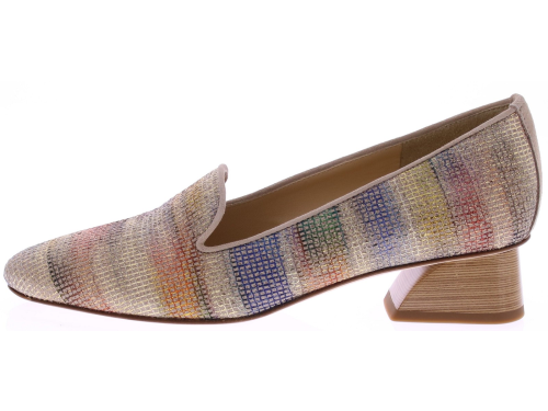 Multicolored women's loafers from Brunate, model 32359. These elegant loafers feature a refined multicolor print and stand on a stable heel of approximately 4 cm. A stylish style that looks both chic with a dress and smart with trousers. Discover other Brunate women's shoes at Klijsen.