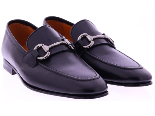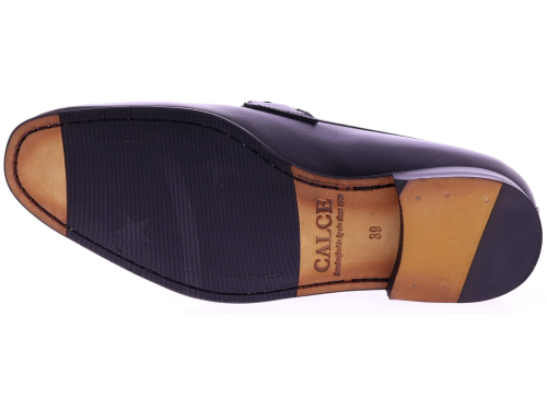 Black leather men's shoe from Calce. This refined loafer is crafted from smooth calf leather and finished with a stylish metal bit across the instep. The leather lining ensures exceptional comfort, while the leather sole with rubber on the wear surface offers extra grip. A timeless and elegant shoe that effortlessly complements both formal and casual occasions.
