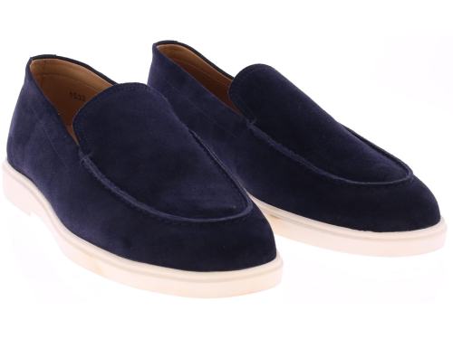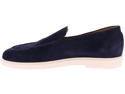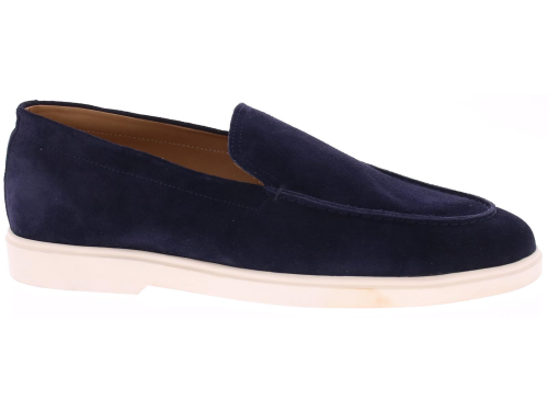 Men's sporty loafer with a white rubber sole from Carlos Santos in dark blue. This loafer is leather-lined and has a removable footbed.