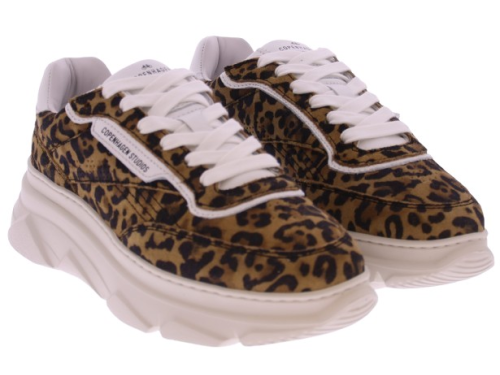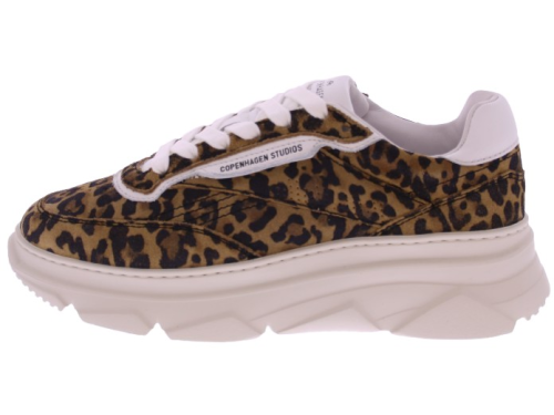 Leopard-print suede sneaker for women from Copenhagen. This low-top sneaker, the CPH56, features a perforated toe. The interior is lined with soft leather. The footbed is removable. Perfect for everyday wear and easy to combine with a variety of outfits.