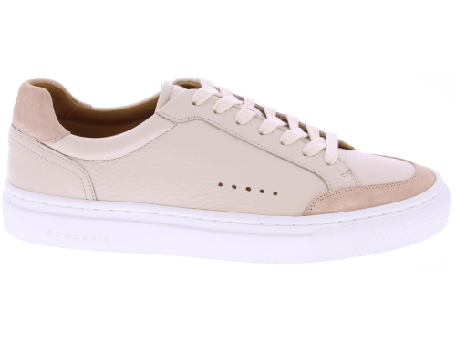 Men's sneakers from the British brand Corden's. These Marble sneakers are made of cream calf leather and suede with a calf leather lining and a removable footbed. The sole is white rubber. These shoes run slightly smaller. Most people order a size up.