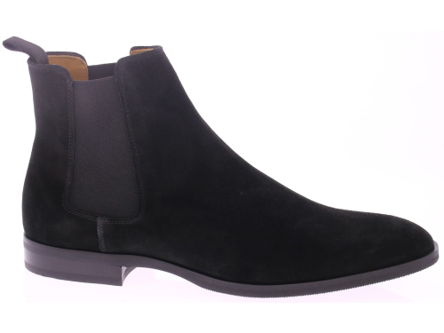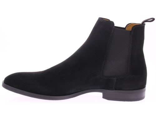 Men's ankle boot from the English brand Corden's, branded SOHO. The shoe is made of black suede and has a calfskin lining. The sole is rubber and neatly stitched. The fit of this shoe is excellent.