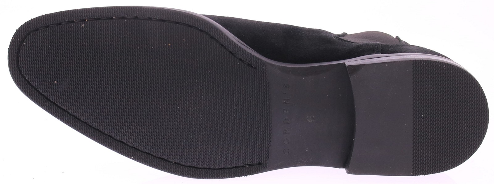 Men's ankle boot from the English brand Corden's, branded SOHO. The shoe is made of black suede and has a calfskin lining. The sole is rubber and neatly stitched. The fit of this shoe is excellent.
