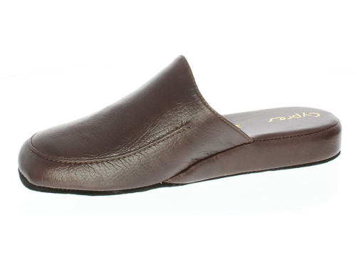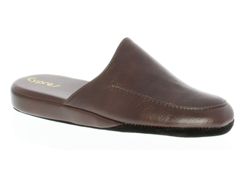 A Cypres slipper mule in dark brown leather on a comfortable sole.