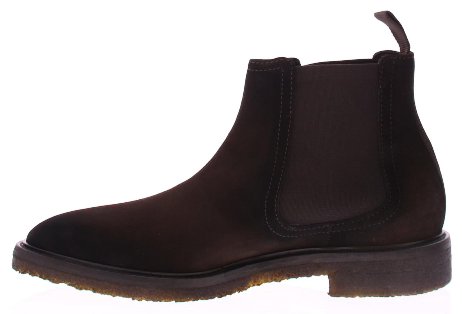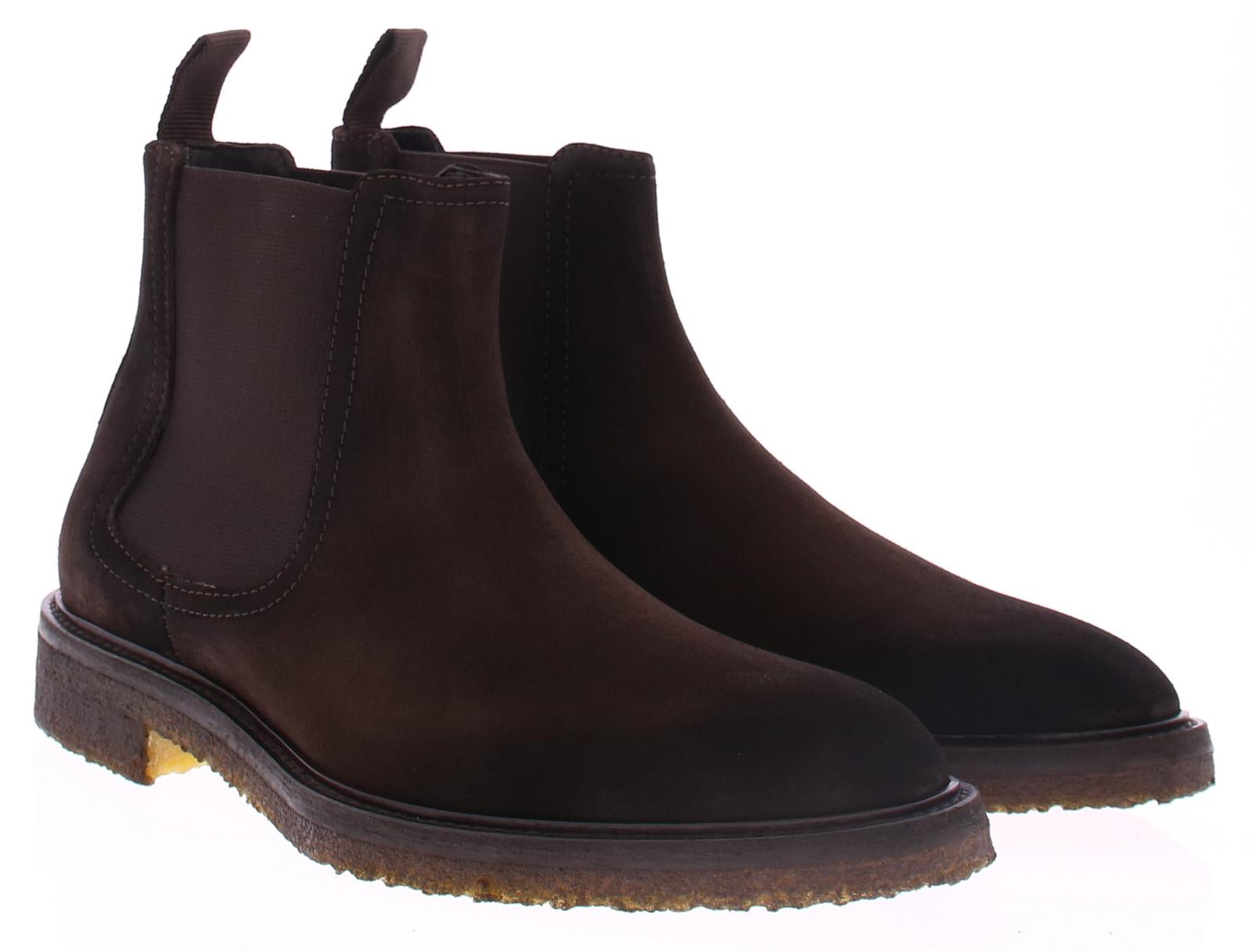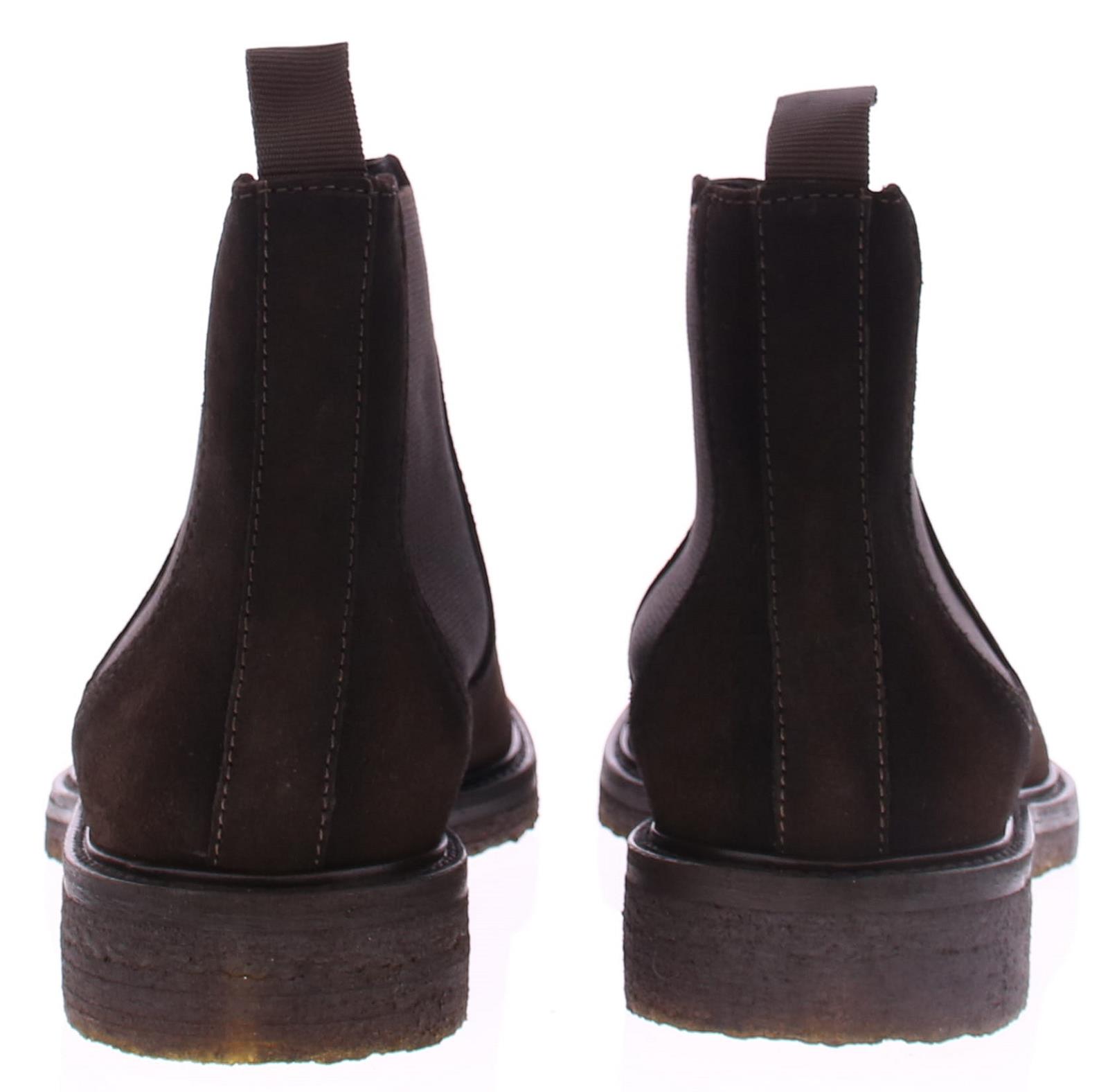 Men's Chelsea boot from Daniel Kenneth. The shoe has a dark brown suede upper and a leather lining on a crepe sole.