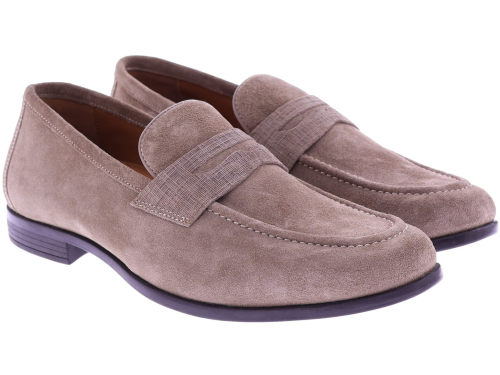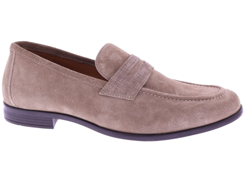 Taupe suede men's loafer from Daniel Kenneth. This elegant Zani model is crafted from soft suede and features a supple leather lining for exceptional comfort. The finely finished penny strap gives it a classic look, while the rubber sole ensures a light and springy feel. A timeless loafer that pairs effortlessly with both casual and formal outfits. Discover other men's loafers from Daniel Kenneth at Klijsen.