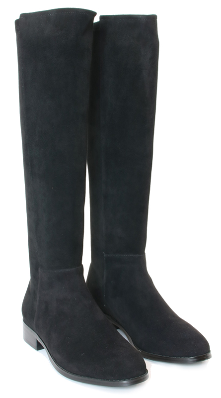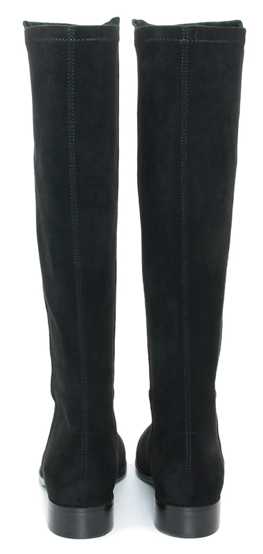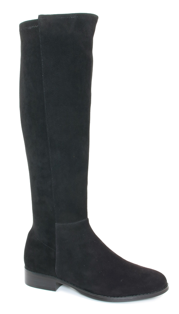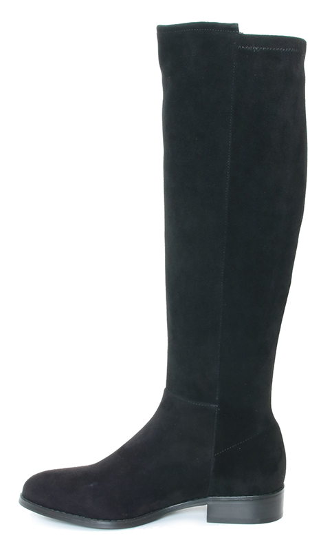 Black suede women's long boot by DiLauro. This boot is made of black suede with stretch material on the calf. The shoe has a rubber sole and combi lining.