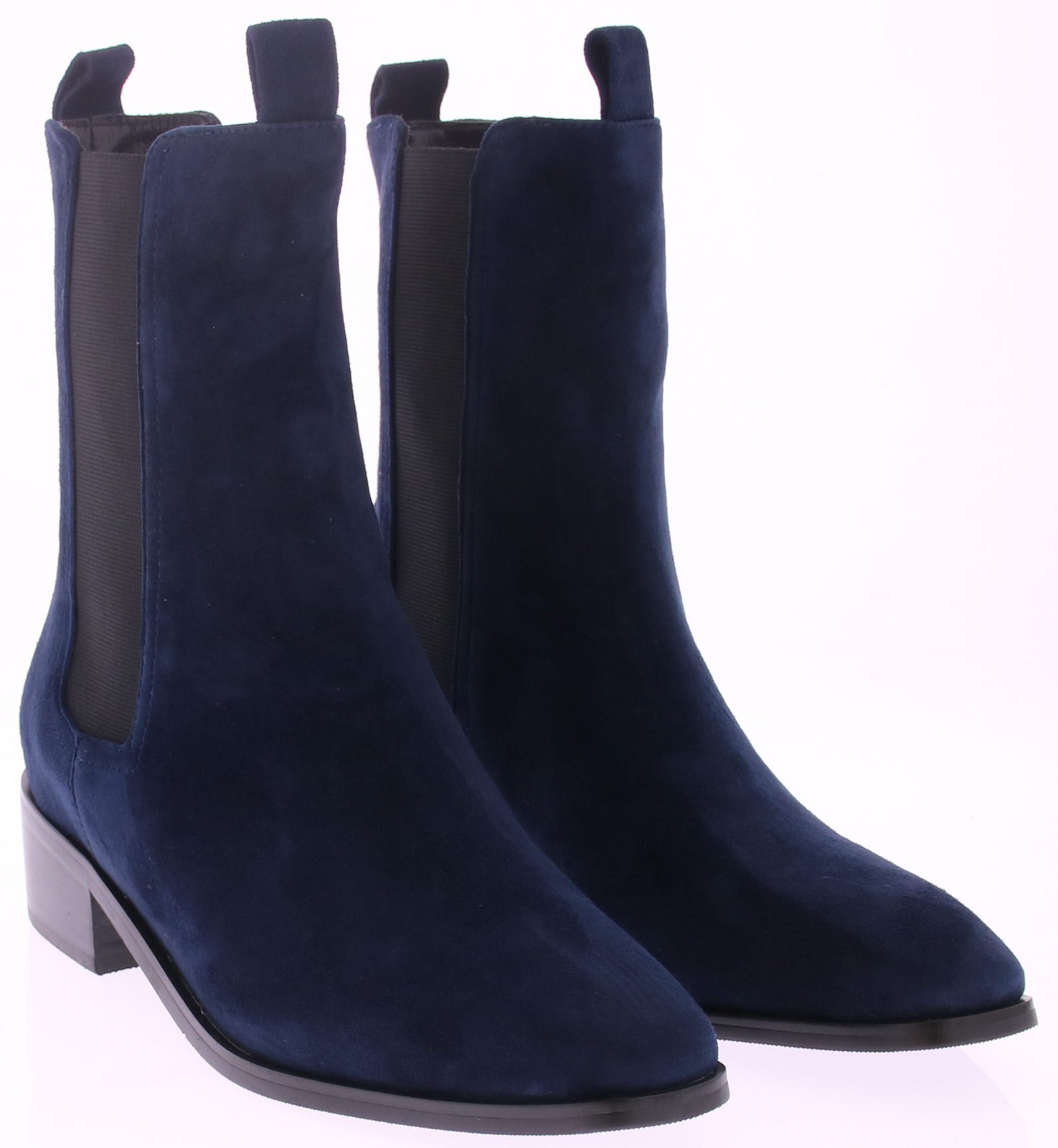 Dark blue suede women's Bernice ankle boot from Di Lauro. This elegant Chelsea boot is the perfect combination of style and comfort. Thanks to the elastic side panels and handy pull-on loops, they're easy to slip on. The 3cm heel gives you that extra height without compromising comfort.