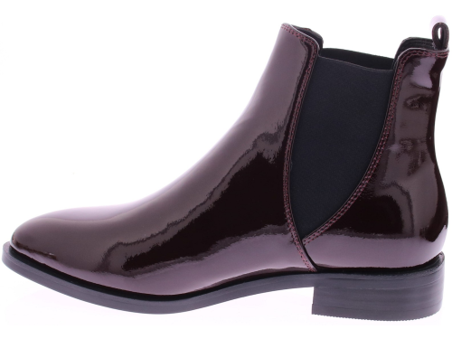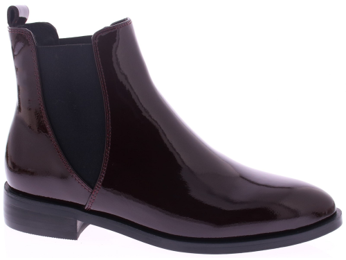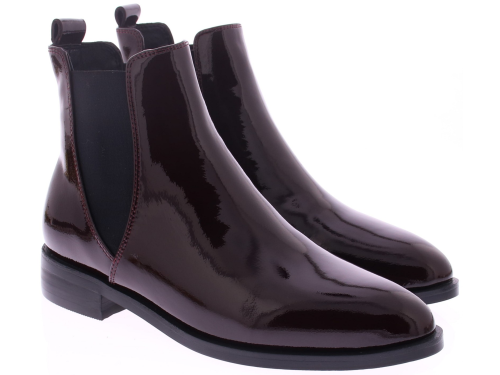 Di Lauro women's burgundy patent leather Chelsea boot. Crafted from glossy burgundy patent leather, these boots feature elastic inserts on the sides for a perfect fit and easy entry. The rubber sole offers excellent grip, while the subtle 2cm heel creates a refined look.