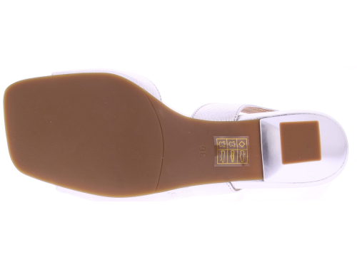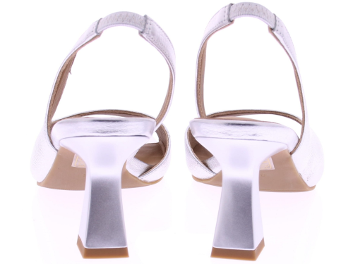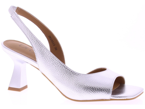 Silver leather women's sandal from Di Lauro, model Wiberta. This sandal has a slightly flared 6 cm heel. The heel is elasticated for a good fit and easy entry. Made of supple leather with a subtle sheen and a polished finish. A stylish shoe suitable for festive occasions and summer days. "Discover other women's shoes from Di Lauro at Klijsen."