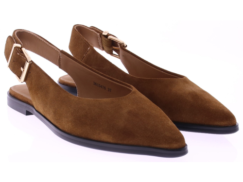 Mid-brown suede women's slingback pumps from Di Lauro, model Deva. This slingback pump has a slightly pointed toe and a wide, adjustable heel strap with a gold-tone buckle for a secure fit. Made of supple suede and featuring a leather lining for extra comfort. A pump that pairs perfectly with both dresses and trousers. "Discover other women's slingback pumps from Di Lauro at Klijsen."
