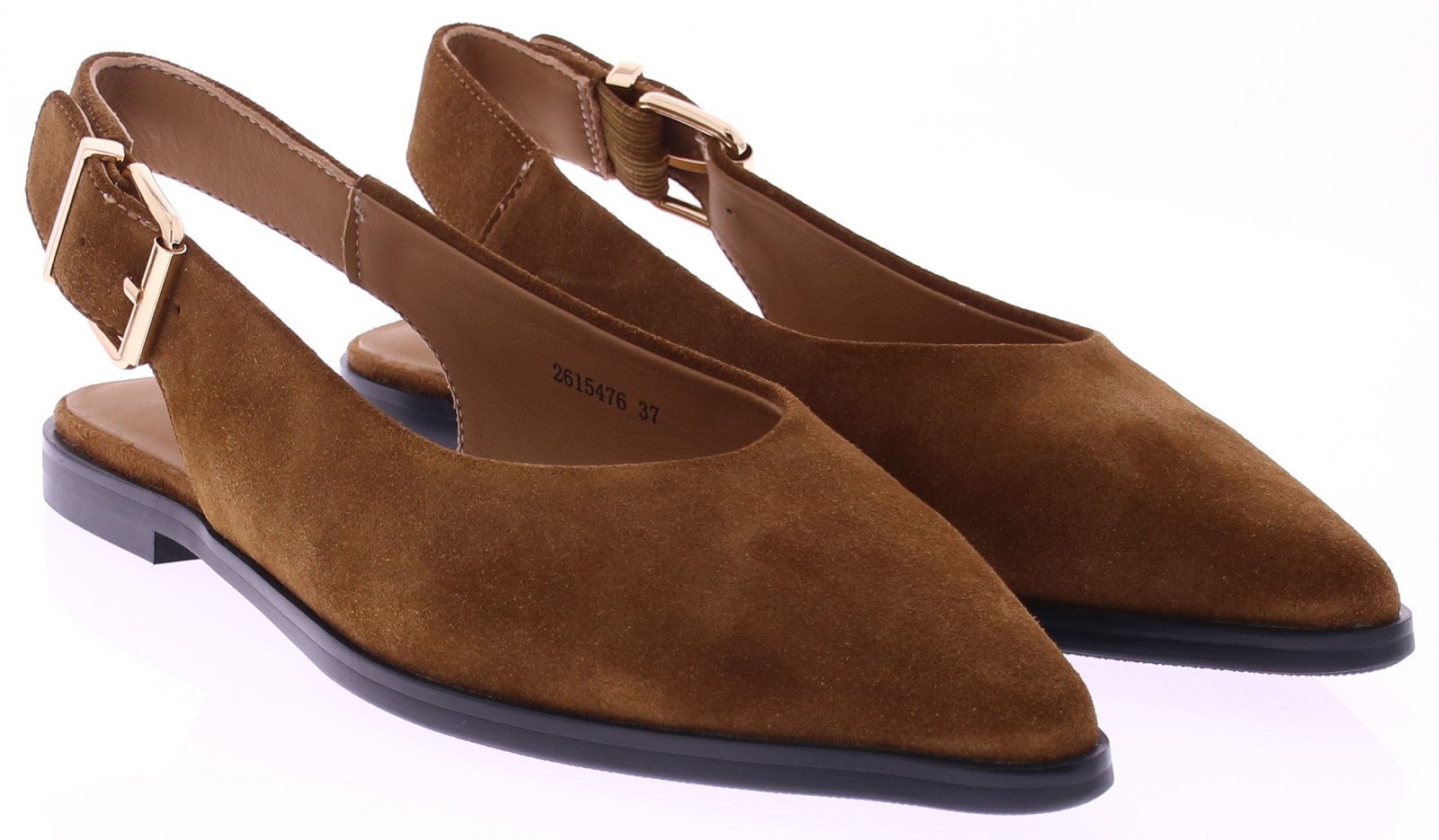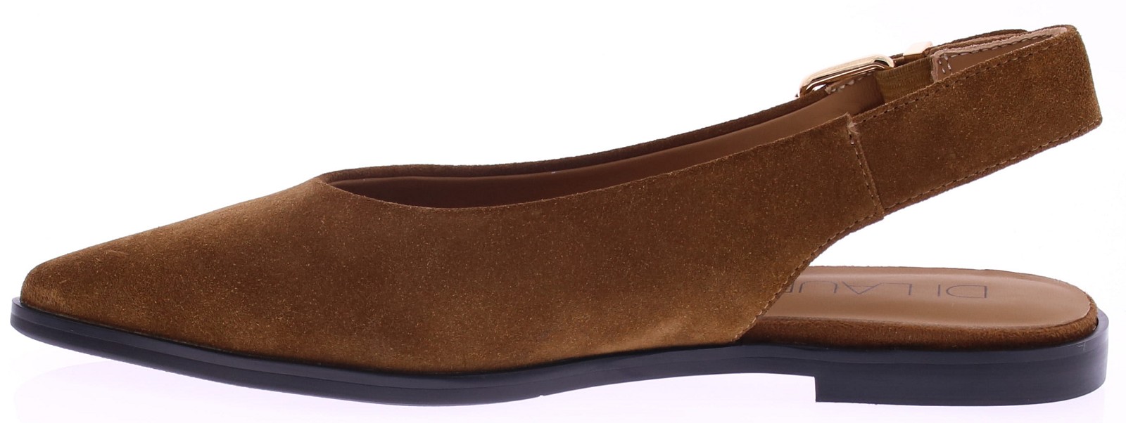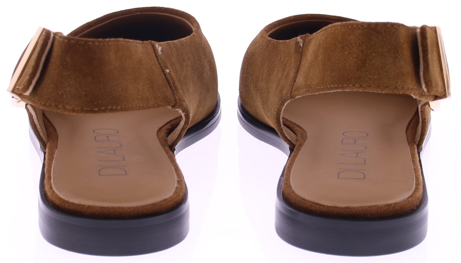 Mid-brown suede women's slingback pumps from Di Lauro, model Deva. This slingback pump has a slightly pointed toe and a wide, adjustable heel strap with a gold-tone buckle for a secure fit. Made of supple suede and featuring a leather lining for extra comfort. A pump that pairs perfectly with both dresses and trousers. "Discover other women's slingback pumps from Di Lauro at Klijsen."