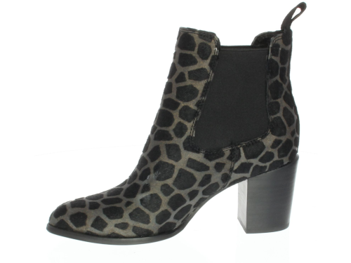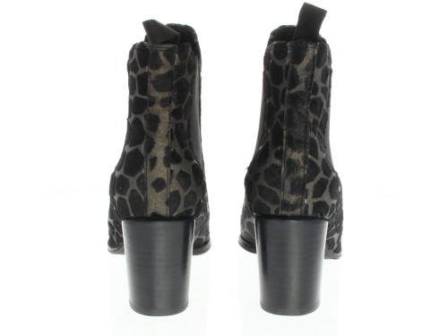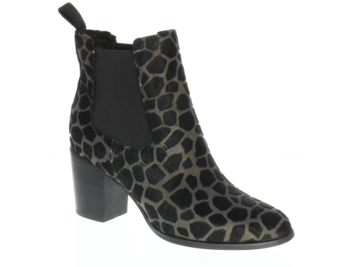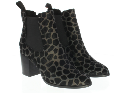 Chelsea boot from Di Lauro with a wide 6cm heel in taupe pony with a black giraffe print.