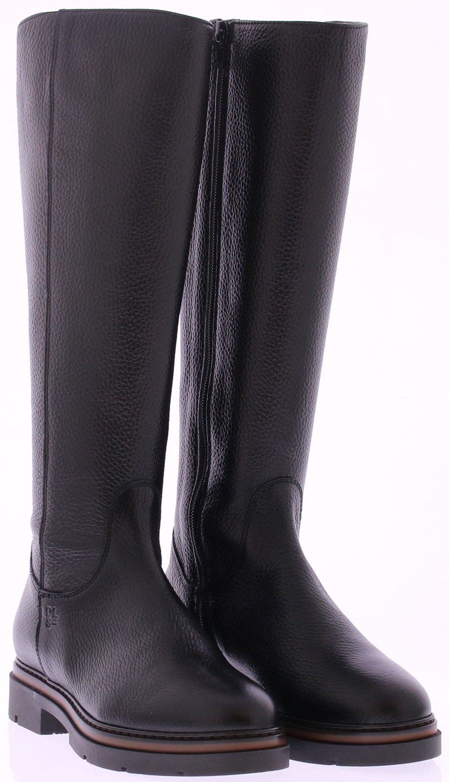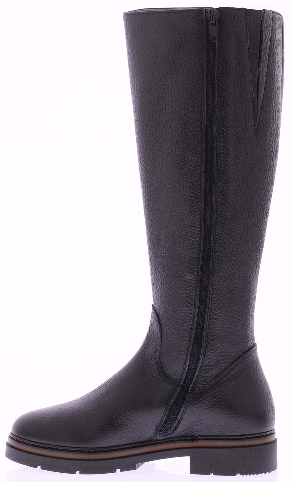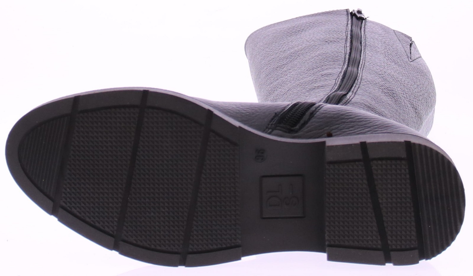 Black tall leather women's boot from DL Sport. This stylish high boot is crafted from supple grain leather, recognizable by its refined texture and rich appearance. This style combines modern comfort with Italian class and features an inner zipper. The comfortable rubber outsole and removable footbed make this boot suitable for everyday use, even with your own insoles. The soft leather lining.