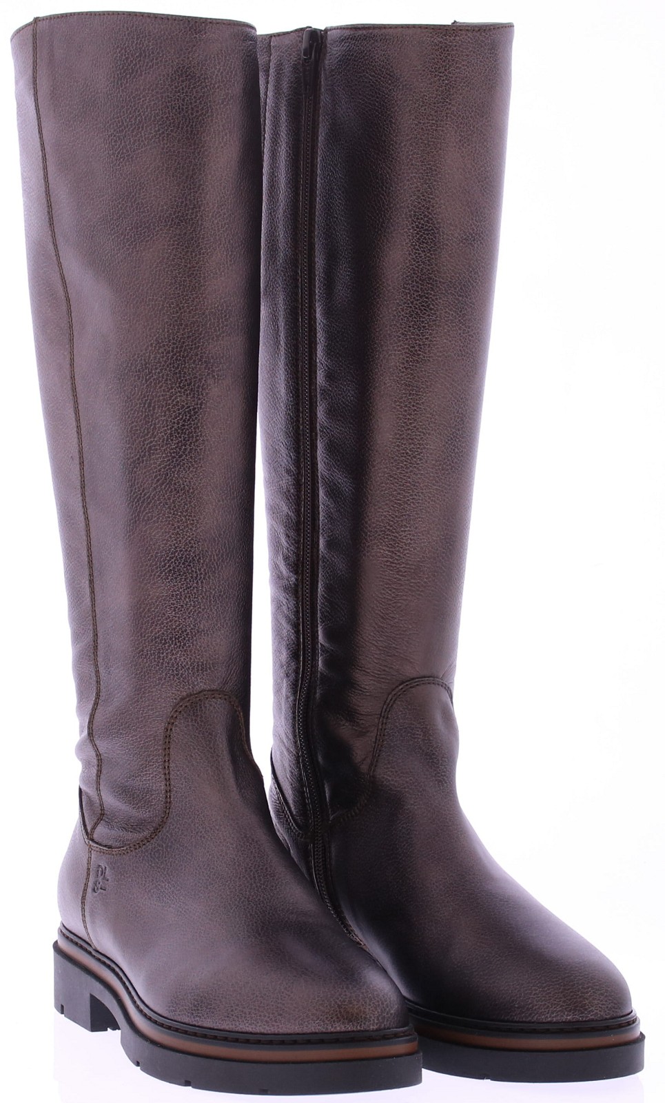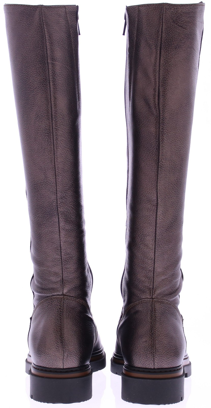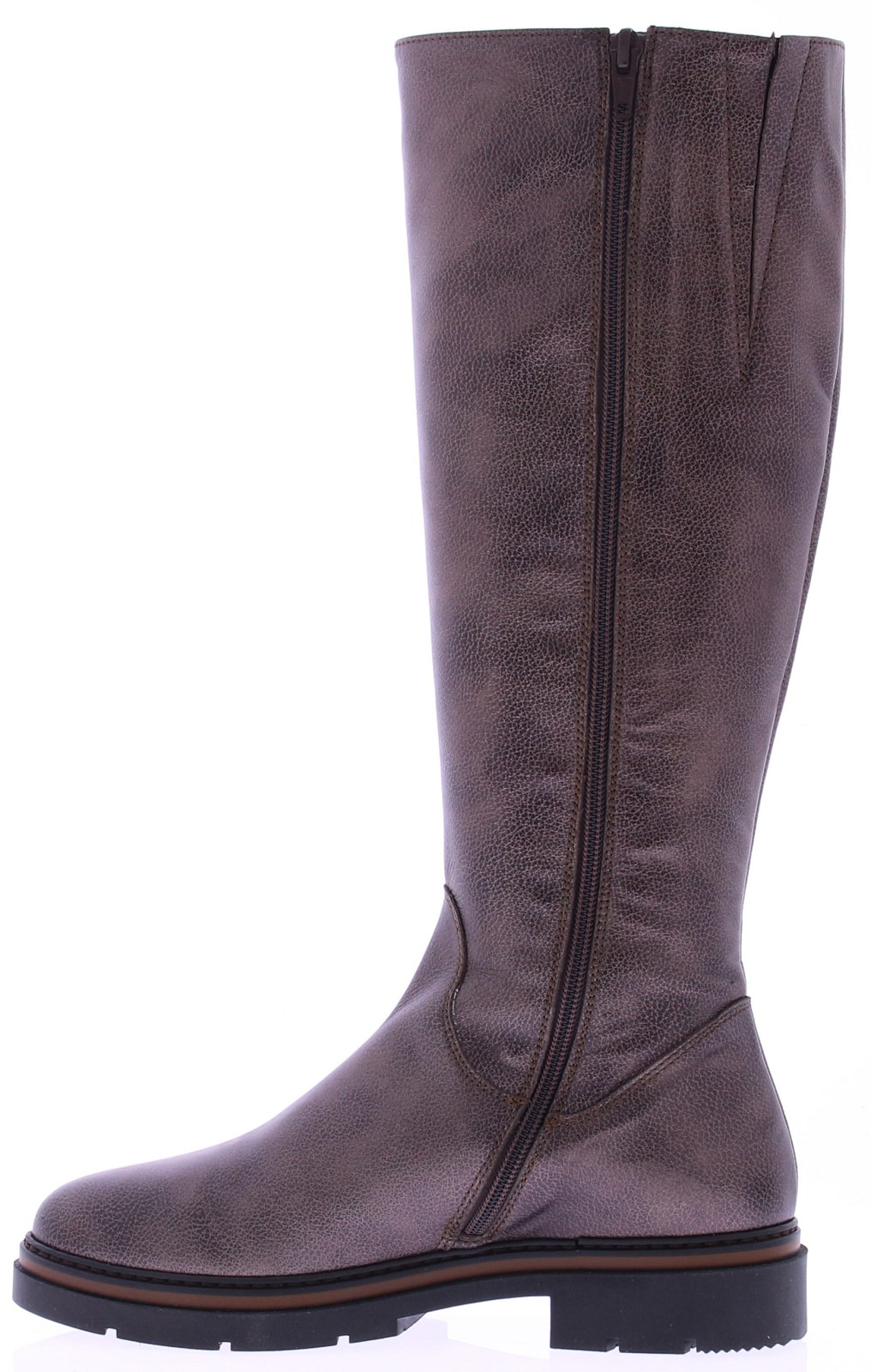 Dark brown metallic tall leather women's boot from DL Sport. This stylish tall boot is crafted from supple grain leather, recognizable by its refined texture and rich appearance. This style combines modern comfort with Italian class and features an inner zipper. The comfortable rubber outsole and removable footbed make this boot suitable for everyday use, even with your own insoles. The soft leather lining.