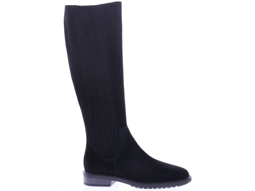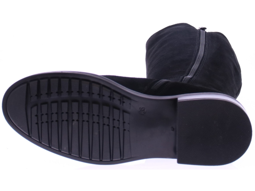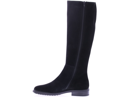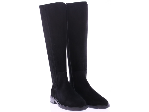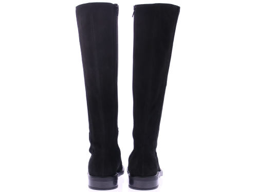 Black suede tall women's boot from DL Sport. This tall, sporty yet elegant boot features elastic bands on the sides of the shaft, creating a flexible and elegant fit. The inside zipper makes it easy to put on and take off. Thanks to the removable footbed, this boot is perfect for your own orthotics without compromising on style.