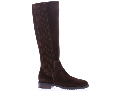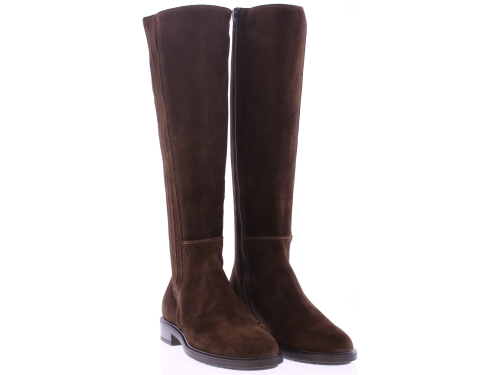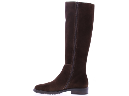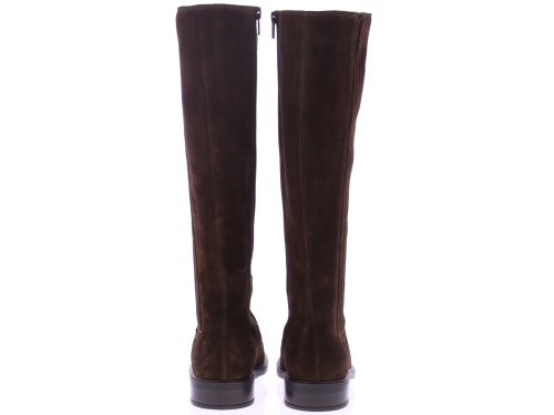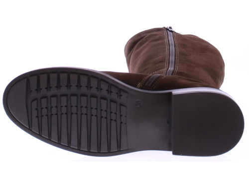 Dark brown suede tall women's boot from DL Sport. This tall, sporty yet elegant boot features elastic bands on the sides of the shaft, creating a flexible and elegant fit. The inside zipper makes it easy to put on and take off. Thanks to the removable footbed, this boot is perfectly suited for your own orthotics without compromising on style.