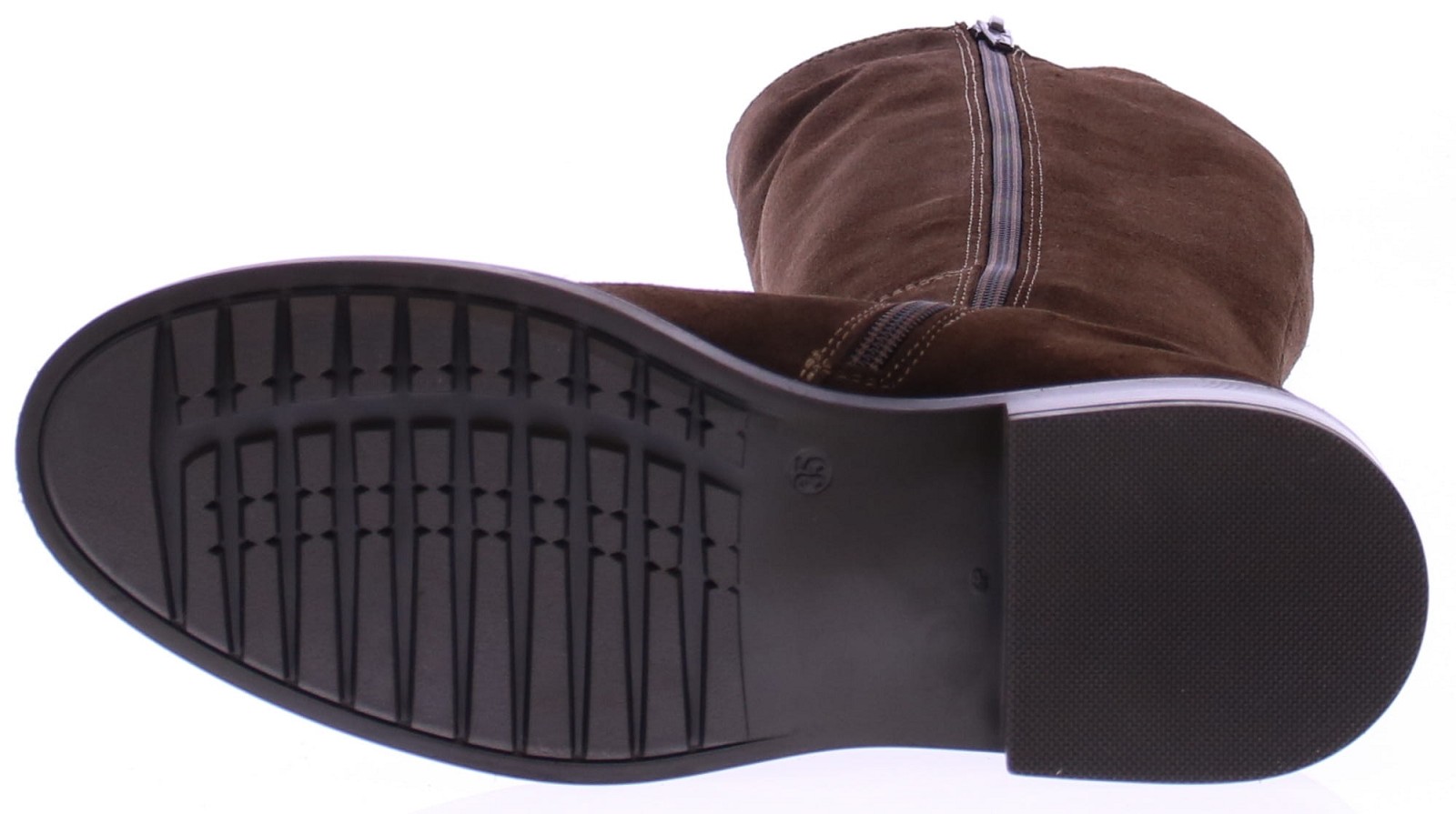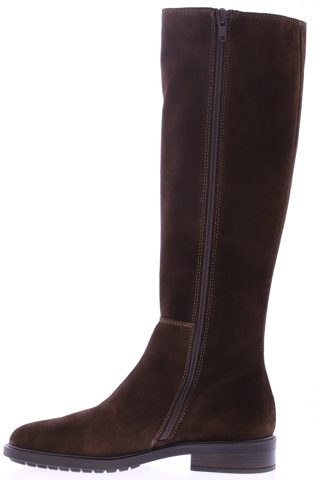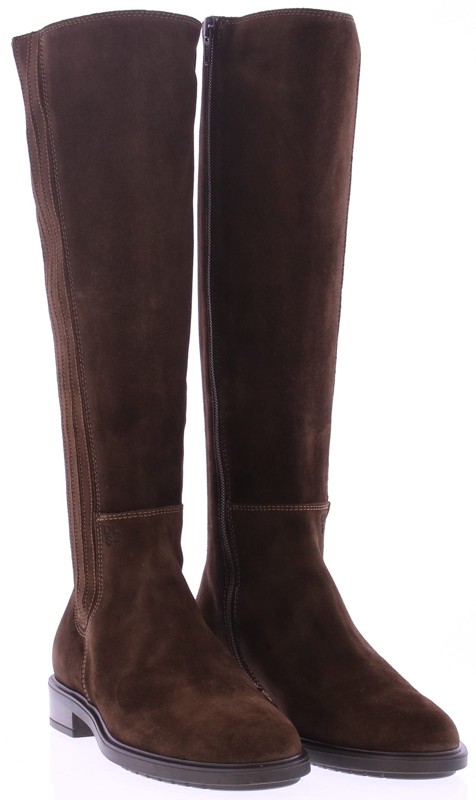 Dark brown suede tall women's boot from DL Sport. This tall, sporty yet elegant boot features elastic bands on the sides of the shaft, creating a flexible and elegant fit. The inside zipper makes it easy to put on and take off. Thanks to the removable footbed, this boot is perfectly suited for your own orthotics without compromising on style.