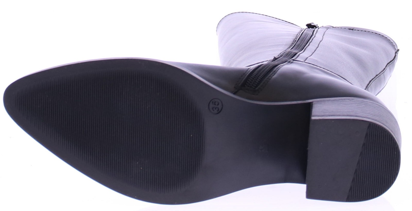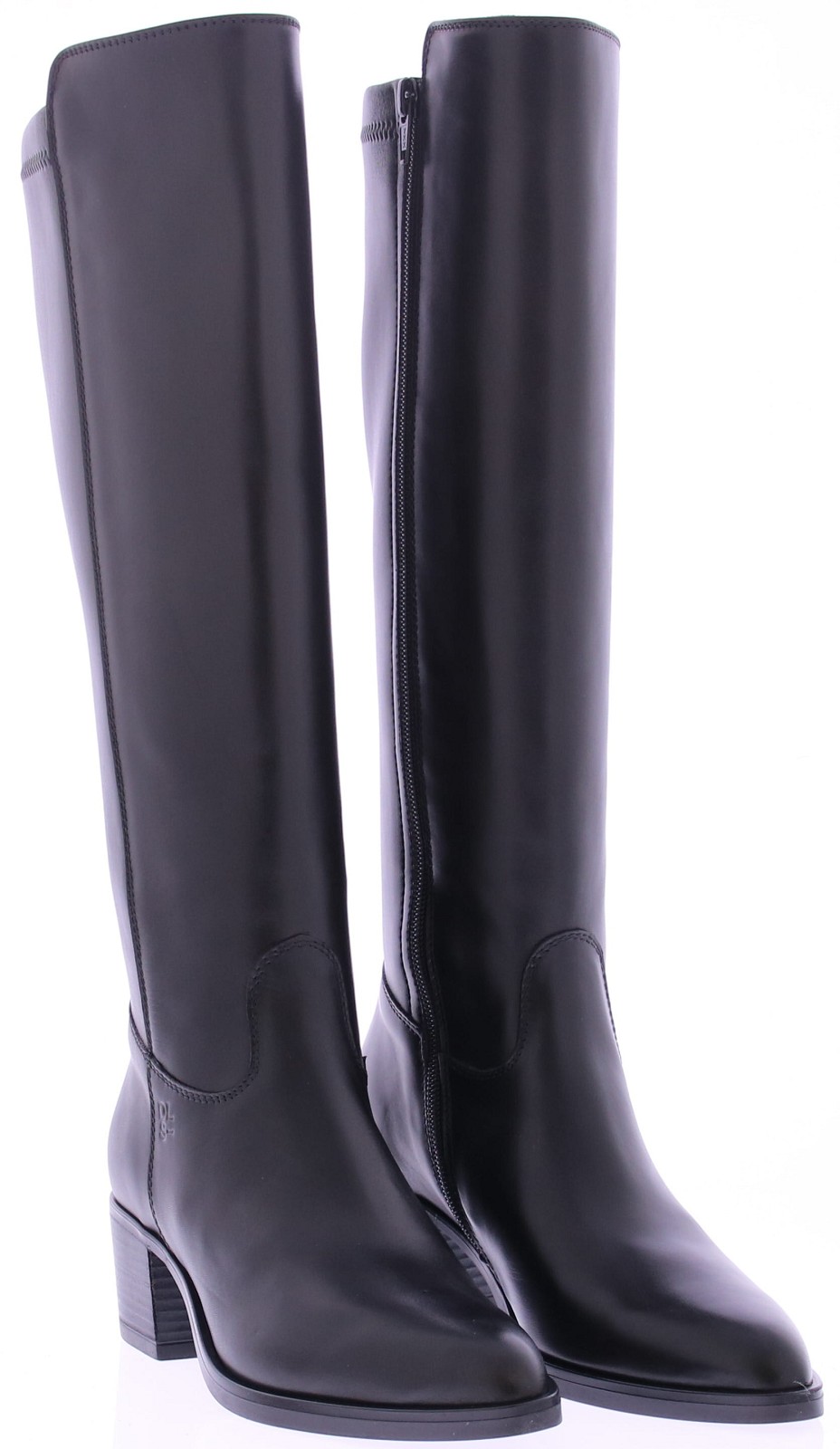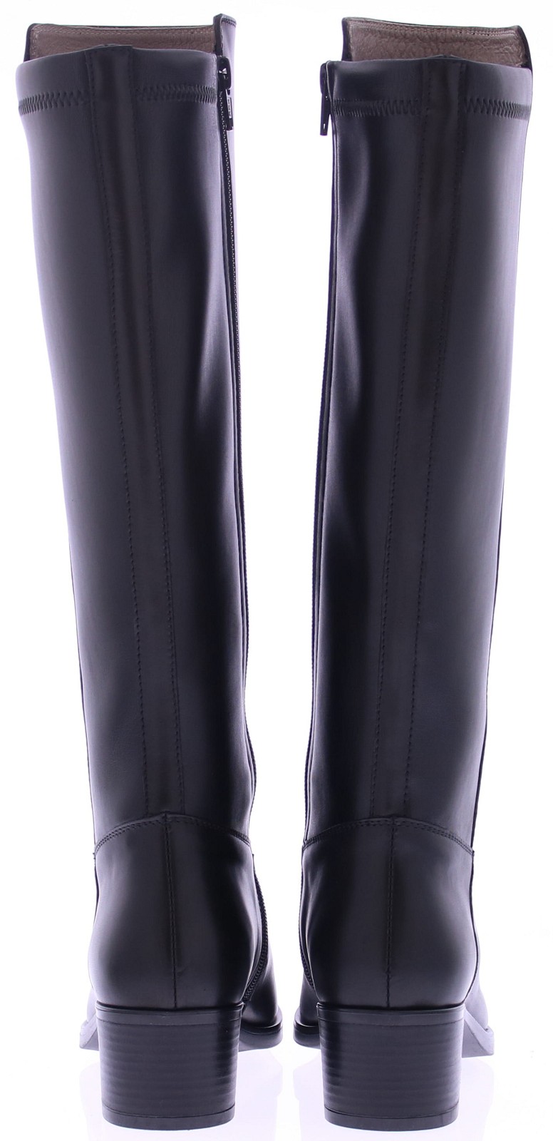 Black leather tall women's boot from DL Sport. This sporty-elegant high boot is the perfect blend of luxury, comfort, and functionality. Made of high-quality calf leather. The XS shaft is made of an elastic stretch material at the back, allowing the boot to conform elegantly to the leg. Thanks to the zipper on the inside, the boot is easy to put on. The removable footbed accommodates your own orthotics and provides extra comfort. The sturdy 4cm heel provides a feminine lift without compromising stability.
