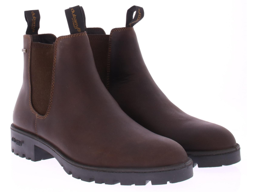 Men's Chelsea boot by Dubarry in greased leather with gore tex lining. The shoe is waterproof up to 2/3 of the height of the elastic. Under the shoe is an anti-slip rubber base.