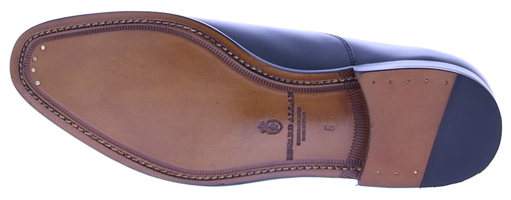 Men's lace-up shoe with toe seam by Edward Allan. This shoe is made goodyear and has a leather lining and sole.