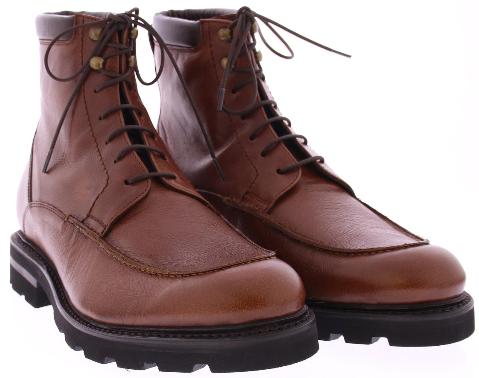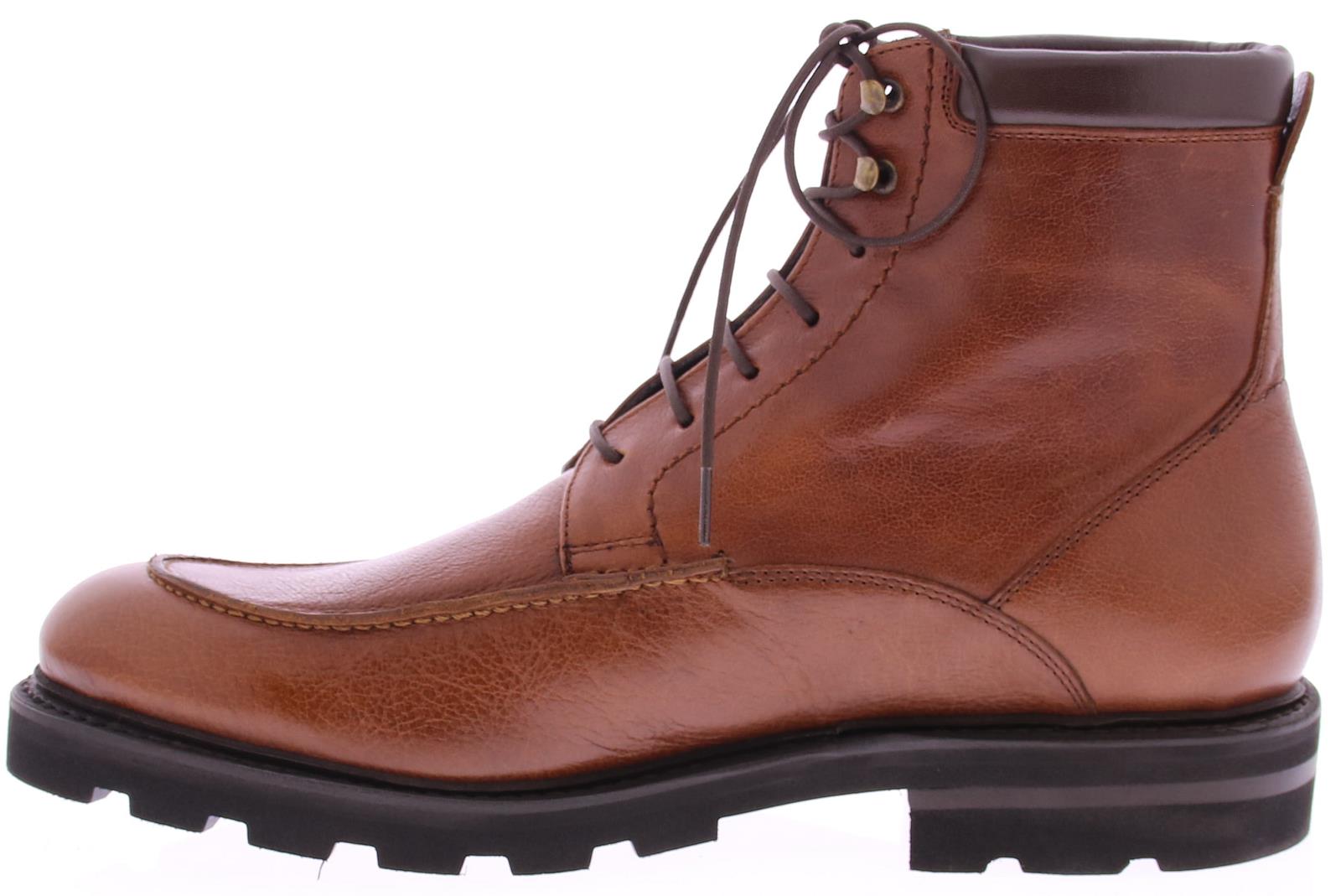 Men's ankle boot by Edward Allan with a mirror seam on the vamp and two hooks at the top to close. The shoe is made of medium brown leather and made according to the goodyear method. The sole is made of rubber and the lining of leather.