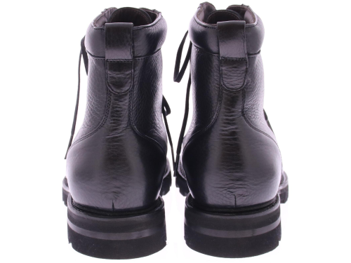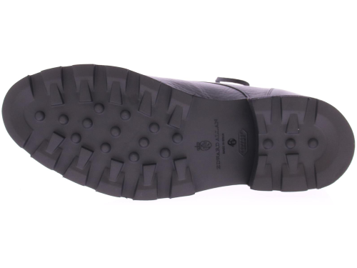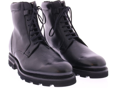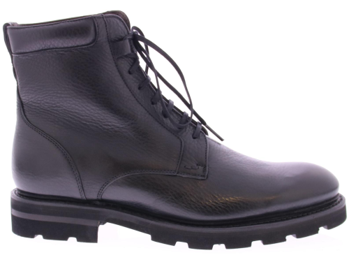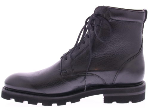 Men's lace-up boot by Edward Allan in bomber black calf leather on a rubber sole with a leather lining. The shoe is made goodyear.