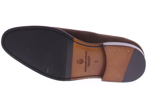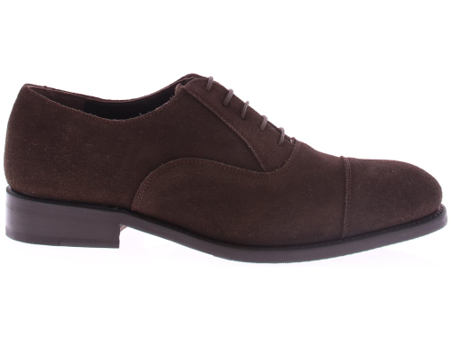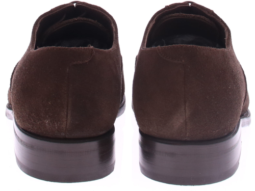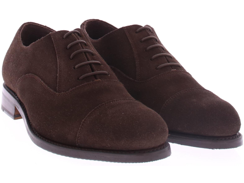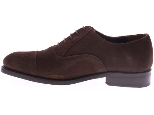 Men's lace-up shoe by Edward Allan in dark brown suede on a rubber sole. The shoe is leather lined and goodyear made.