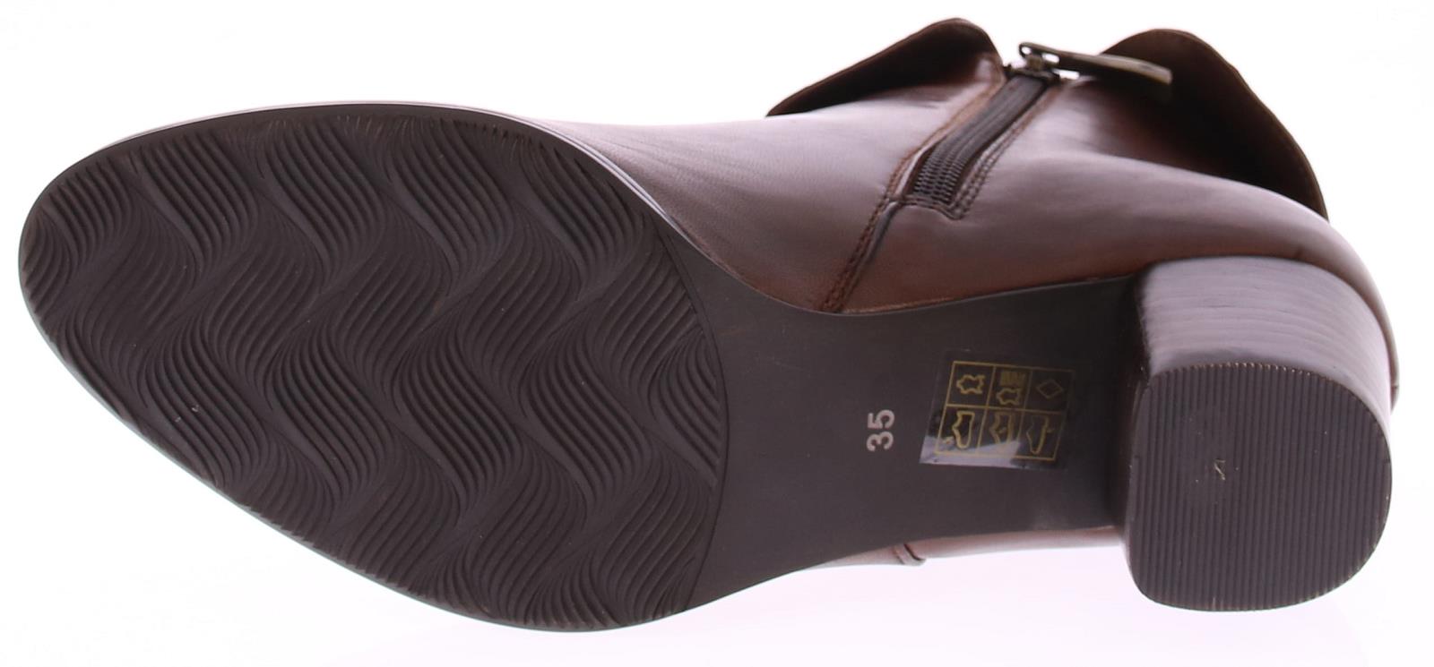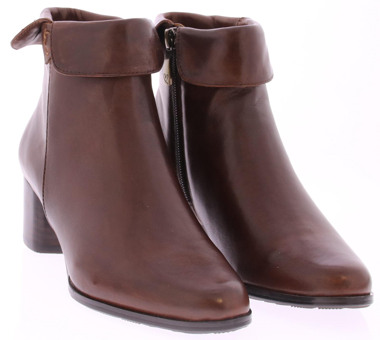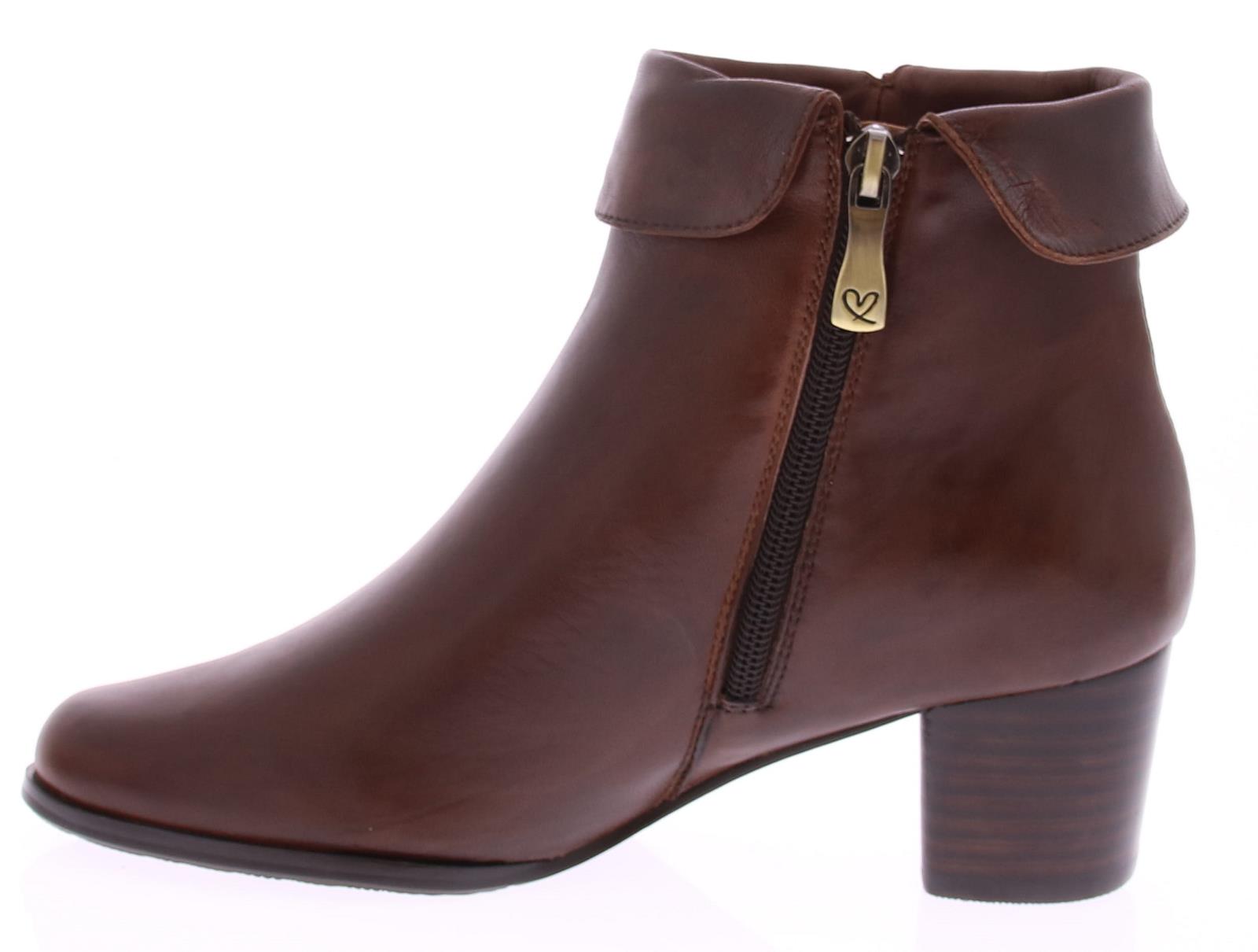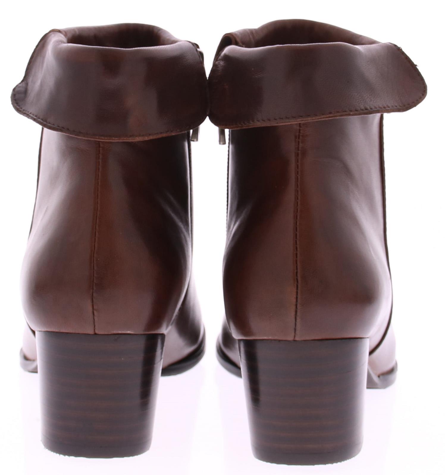 Mid-brown leather women's ankle boot from Everybody. The boot has an elegant cuff around the ankle and a 5 cm heel. The boot is lined with soft teddy fabric and has an inner zipper.