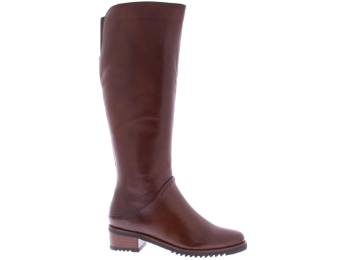 Mid-brown leather long boots for women by Everybody. These boots are made of supple calf leather. The inside is made of nice soft velour material with a fixed footbed. The shaft is approximately 39 cm high and has a zipper over the entire length. The elastic insert at the top ensures a nice fit. The rubber heel with a wooden detail has a comfortable height of approximately 3 cm. A rubber profile sole completes the boots.