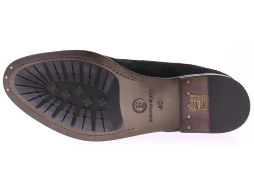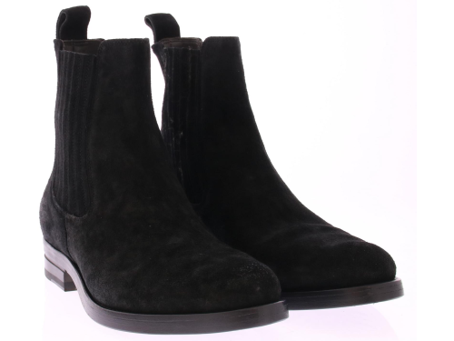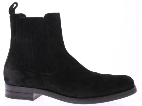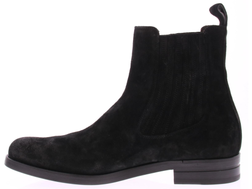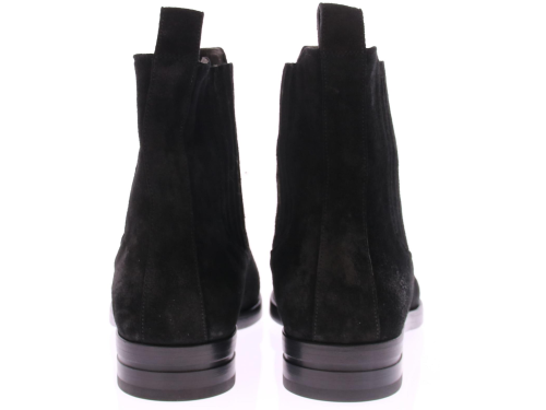 Men's Chelsea boot by Fabrizio Silenzi in black greased suede on a combination of leather and rubber. The shoe has a leather lining and a vintage look.