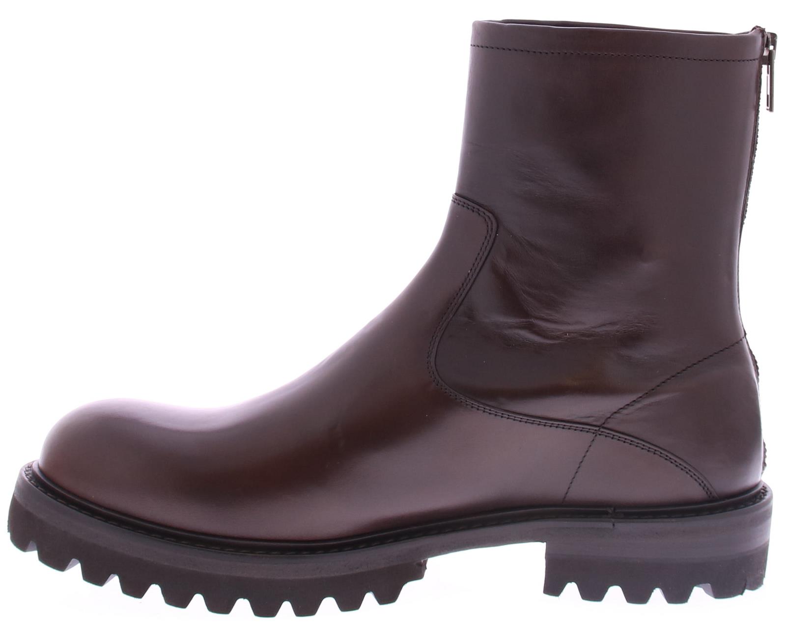 Men's Zip Boot by Fabrizio Silenzi article 3083 made of sturdy cordovan leather with a coarse rubber sole. The zip is on the back of the shoe. This shoe has a sturdy look.