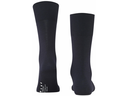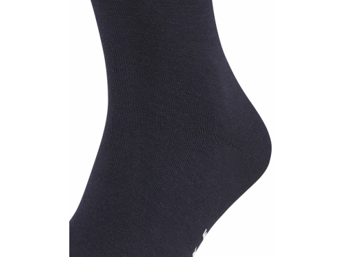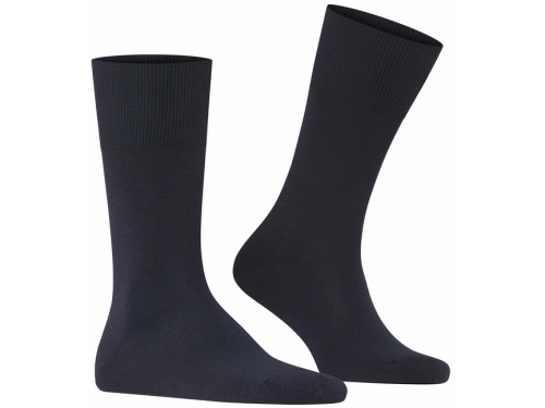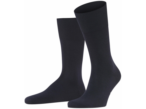 Falke Airport men's socks in dark blue. Thanks to the innovative combination of high-quality merino wool on the outside and skin-friendly cotton on the inside, these socks ensure excellent temperature regulation and exceptional wearing comfort. The socks have a flat seam for a pressure-free toe tip and an extended band for a crease-free fit on the leg. Material: 60% virgin wool, 23% cotton, 15% polyamide, 2% elastane.