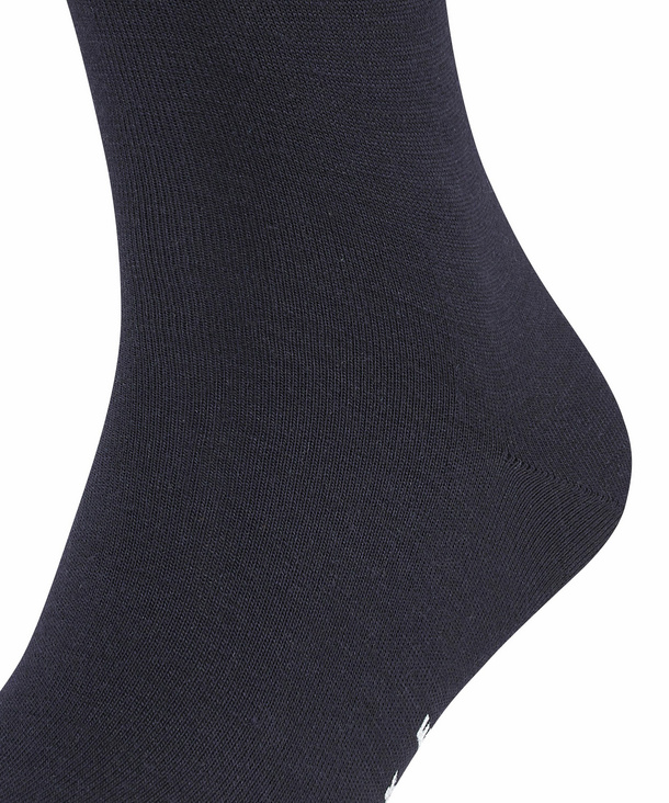 Falke Airport men's socks in dark blue. Thanks to the innovative combination of high-quality merino wool on the outside and skin-friendly cotton on the inside, these socks ensure excellent temperature regulation and exceptional wearing comfort. The socks have a flat seam for a pressure-free toe tip and an extended band for a crease-free fit on the leg. Material: 60% virgin wool, 23% cotton, 15% polyamide, 2% elastane.