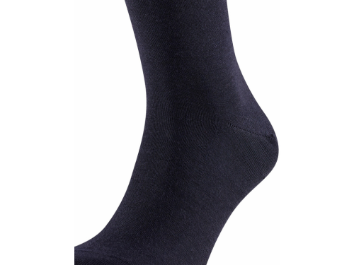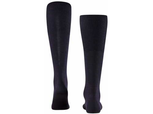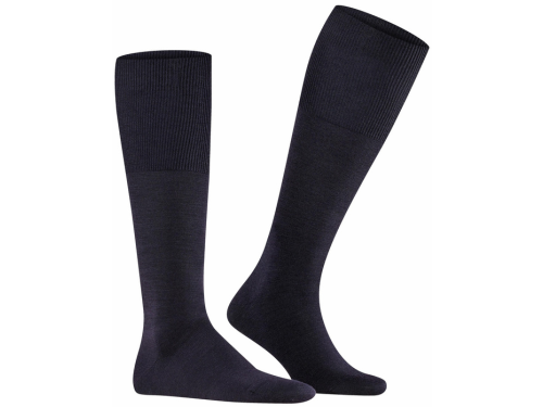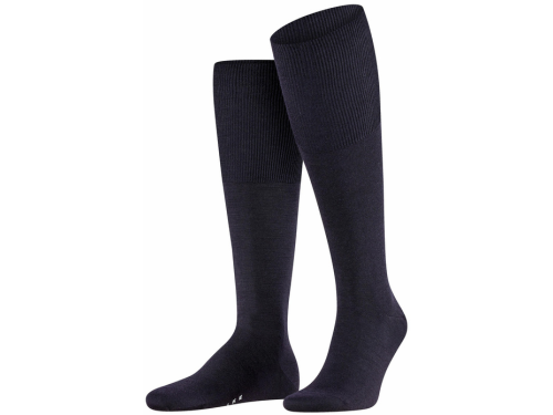Falke Airport men's knee socks in dark blue. Perfectly suited for both leisure and work. In addition to the fine FALKE fit and reinforced stress zones, a particularly flat toe seam contributes to an excellent wearing comfort. The innovative combination of high-quality merino wool on the outside and skin-friendly cotton on the inside ensures excellent temperature regulation. Material: 60% virgin wool, 23% cotton, 15% polyamide, 2% elastane.