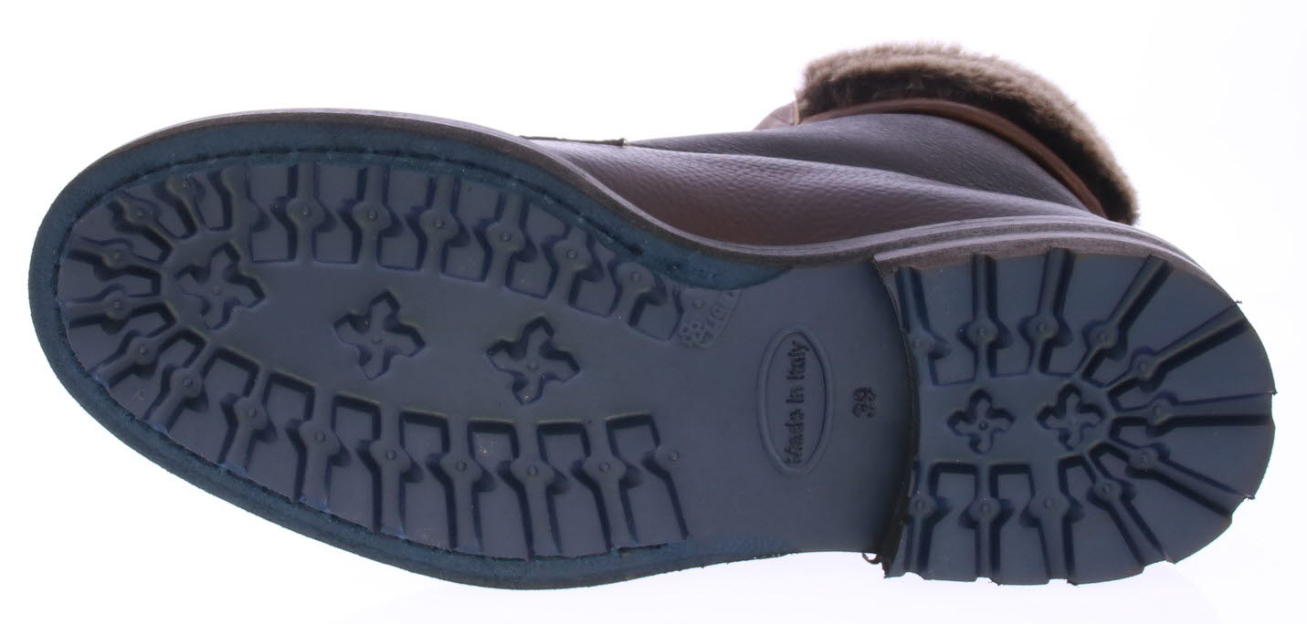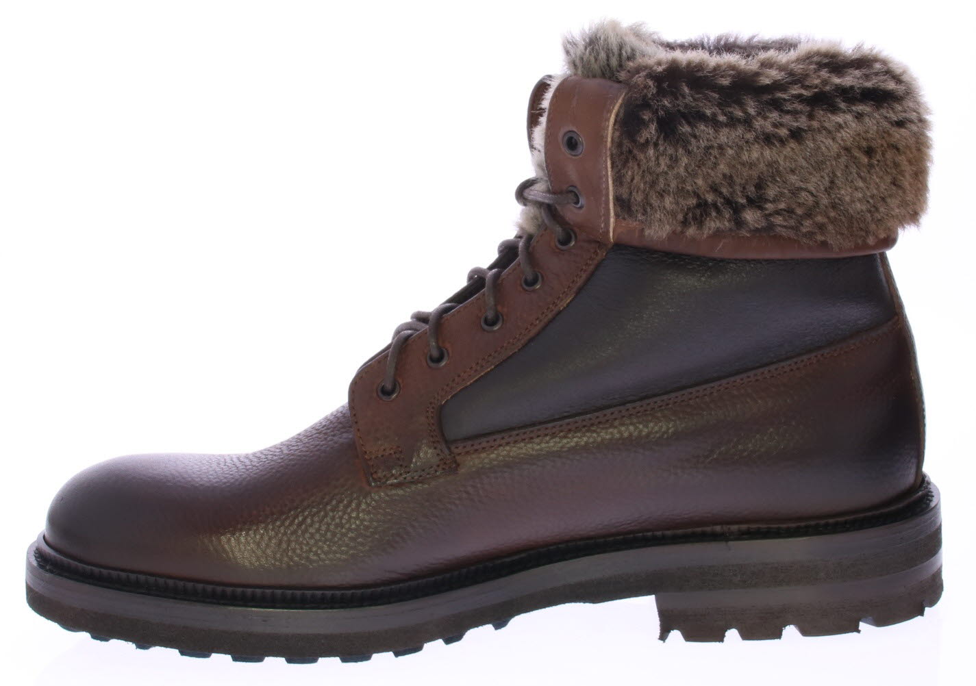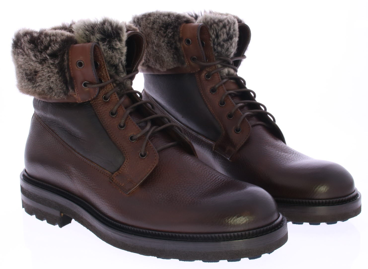 Dark brown leather men's ankle boot from Flecs. The boot is lined with fur in the shaft. The rest of the upper is grain leather. The sole is rubber.