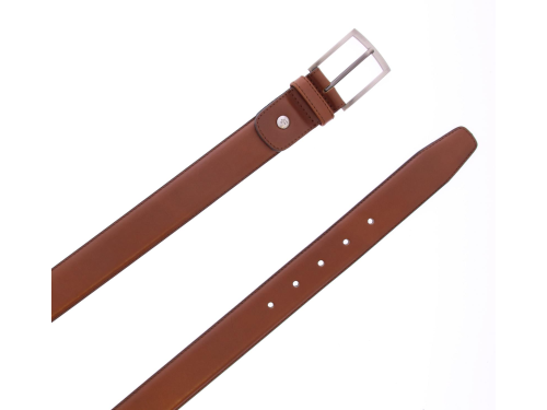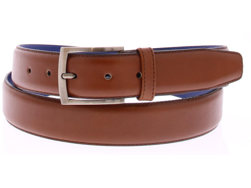Cognac leather men's belt by Floris van Bommel. With a slim buckle and a timeless design, this belt adds a touch of class to any outfit, suitable for both formal and informal occasions. The belt is leather-lined and can be shortened on the buckle side.