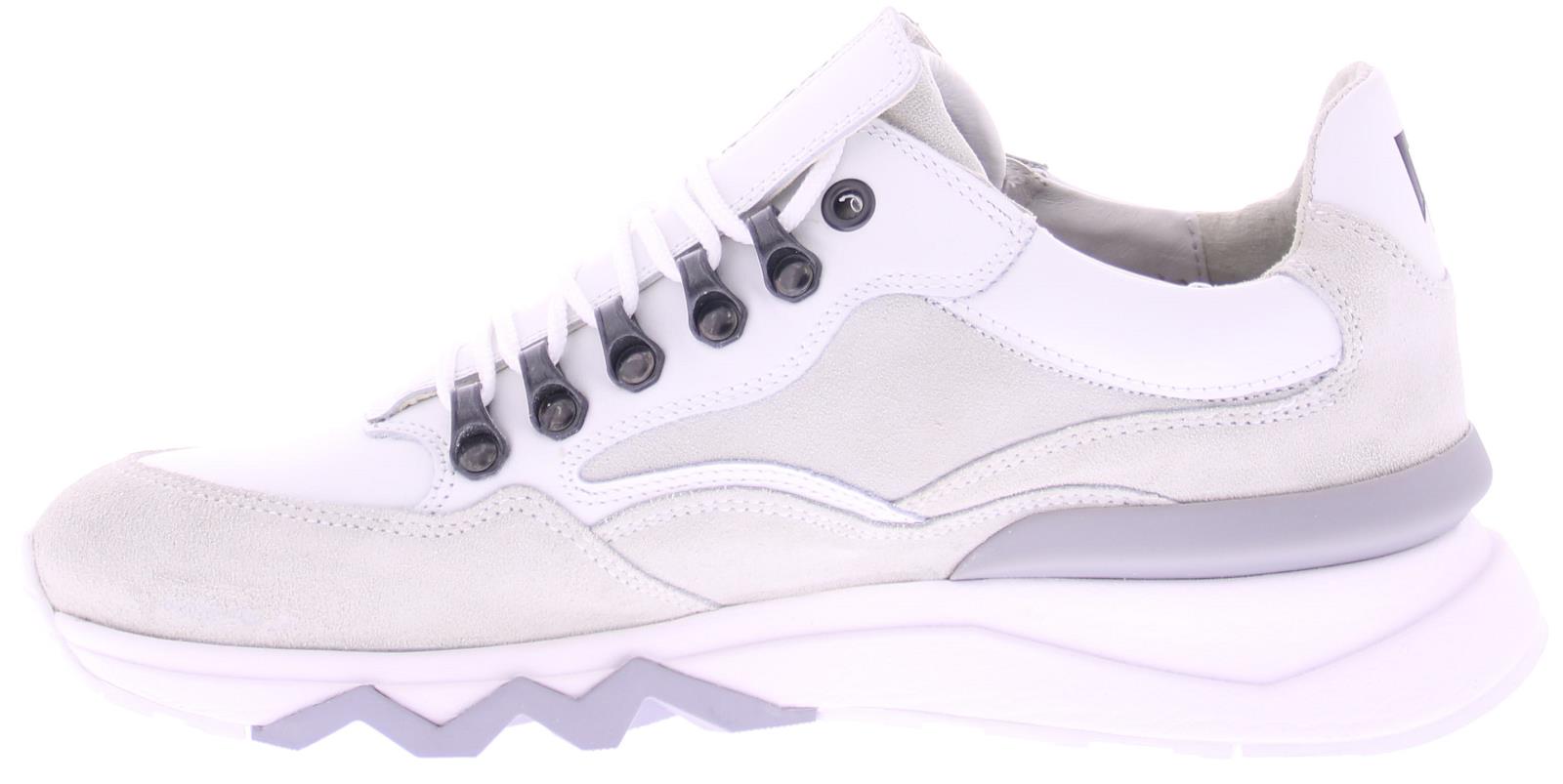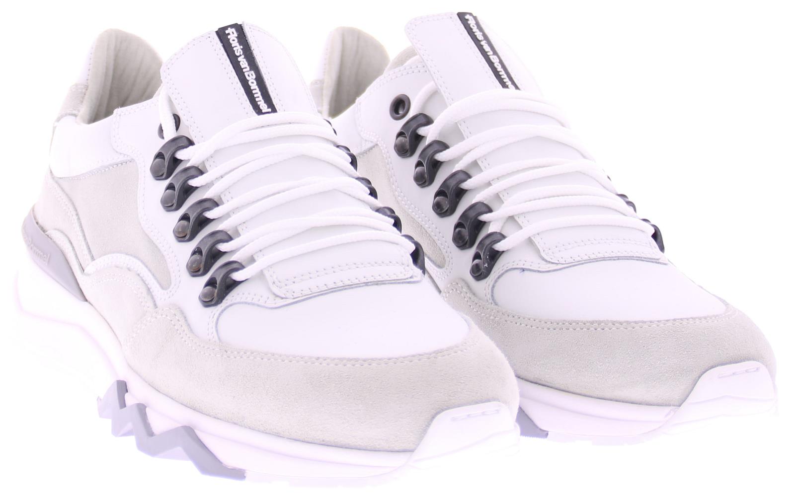 Men's sneaker by Floris van Bommel article De Zager 01.05. The shoe is made of white leather and has a rubber sole and leather lining. The last is G1/2.