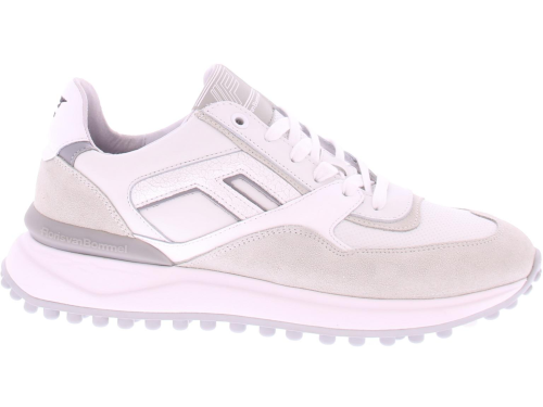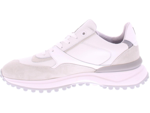 White men's sneaker by Floris van Bommel, model 'Noppi SFM-10139.60-02'. The lining is made of leather in combination with suede and the cushioning footbed is removable. The ascending white sole is made of rubber and the outsole has a stud profile. The insole is removable.