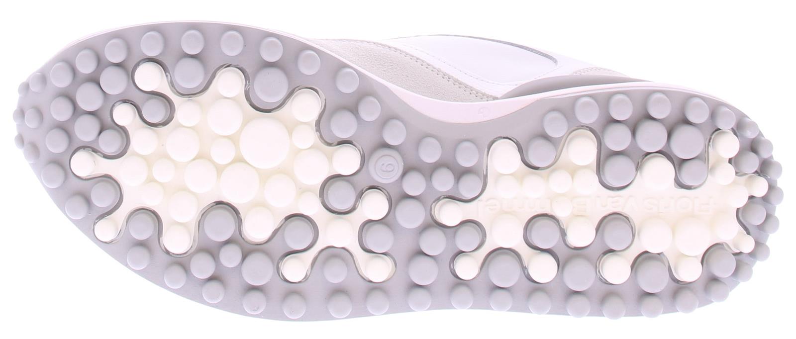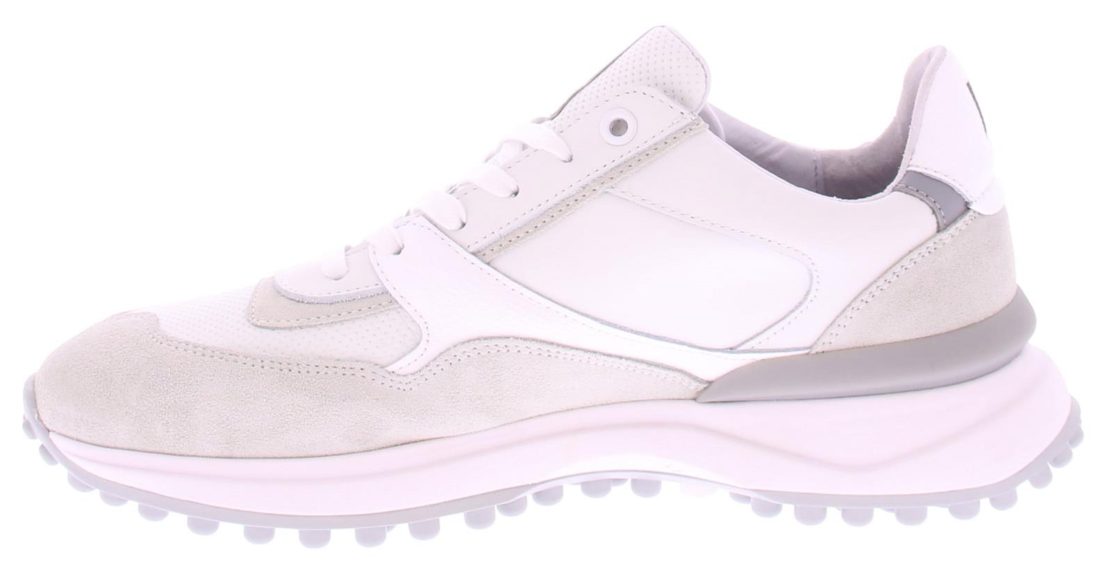 White men's sneaker by Floris van Bommel, model 'Noppi SFM-10139.60-02'. The lining is made of leather in combination with suede and the cushioning footbed is removable. The ascending white sole is made of rubber and the outsole has a stud profile. The insole is removable.