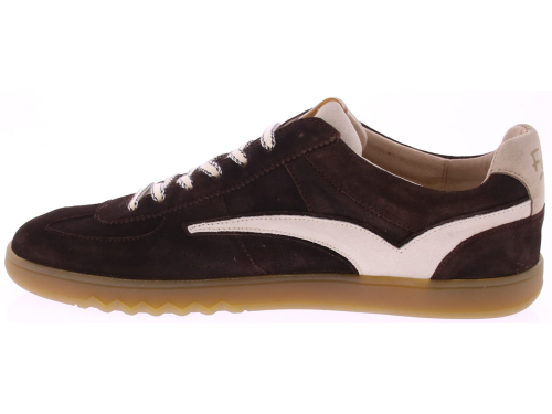 The Floris van Bommel Zaler 01.13 is a retro-inspired sneaker in brown suede with beige details. The sporty design is enhanced by the wavy side panels and the signature rubber sole with a serrated edge. The combination of colors and materials gives the sneaker a fresh and contemporary look, while offering exceptional comfort. This casual sneaker is ideal for everyday wear and easily pairs with jeans or chinos. The Floris van Bommel Zaler series is known for its blend of sporty flair and luxurious finishes—and this model is the perfect example.
